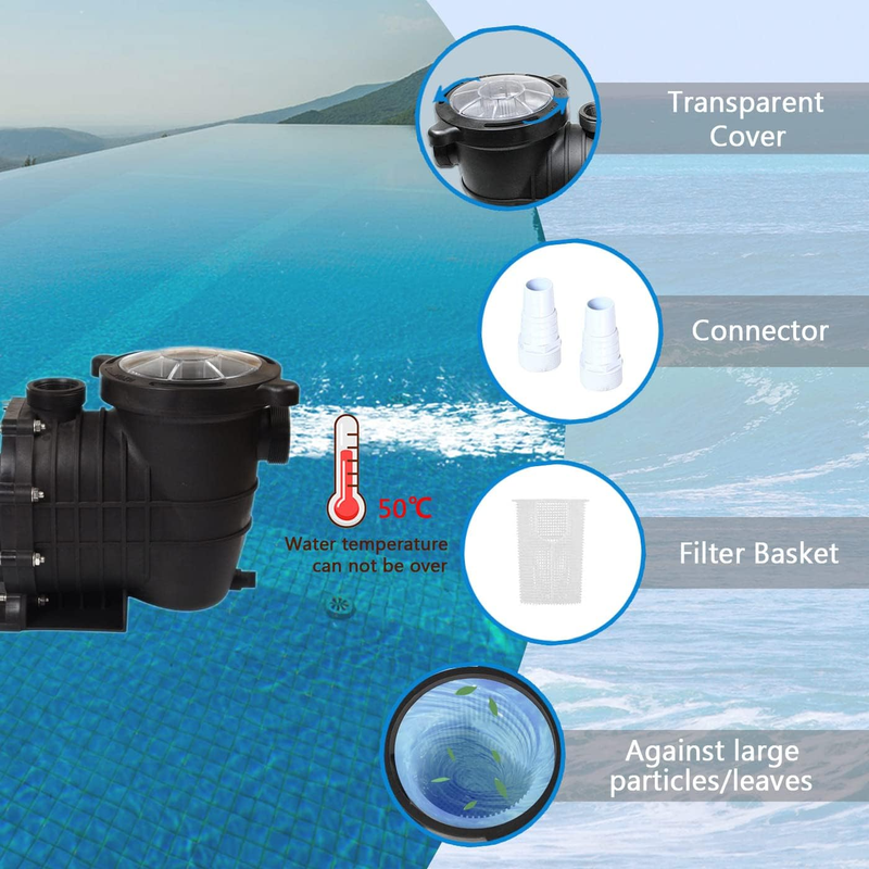 The large strainer basket can easily filter out the debris and leaves in the water to protect the pump from being damaged.