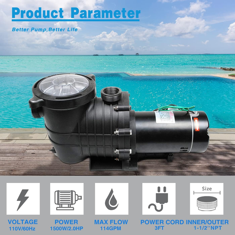 2.0HP 110GPM Swimming Pool Pump 110V Garden Inground and above Ground Pool Water Pump with Strainer Filter Basket