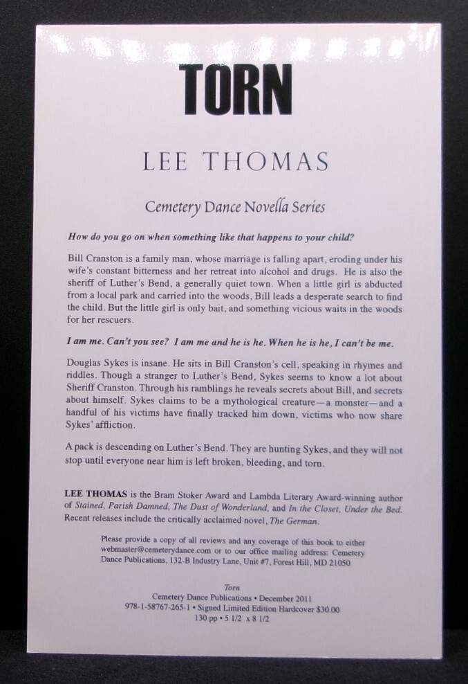 Lee Thomas TORN Advance Uncorrected Proof Cemetery Dance Horror Novella Unread