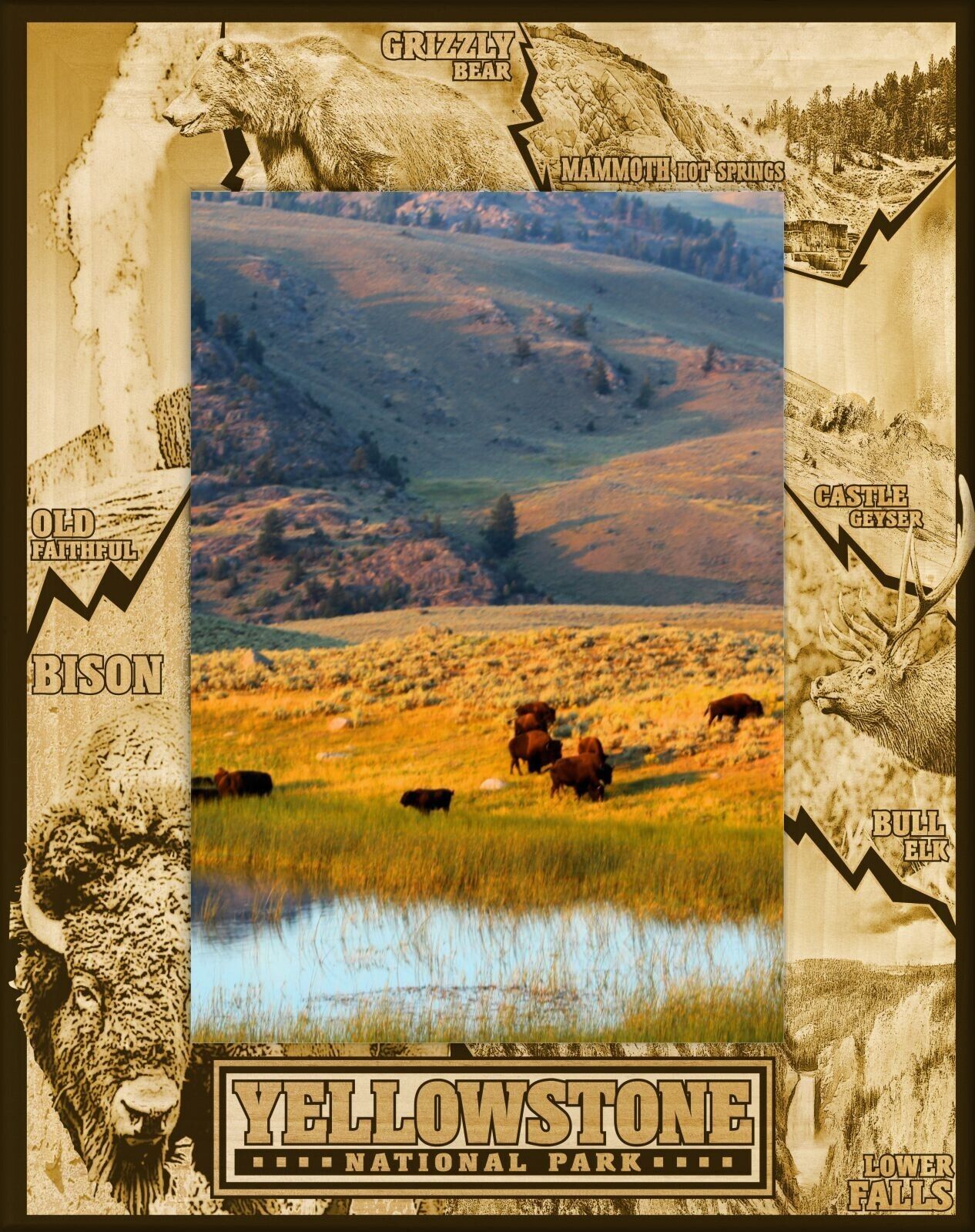 Yellowstone National Park Laser Engraved Wood Picture Frame Portrait (4 x 6)