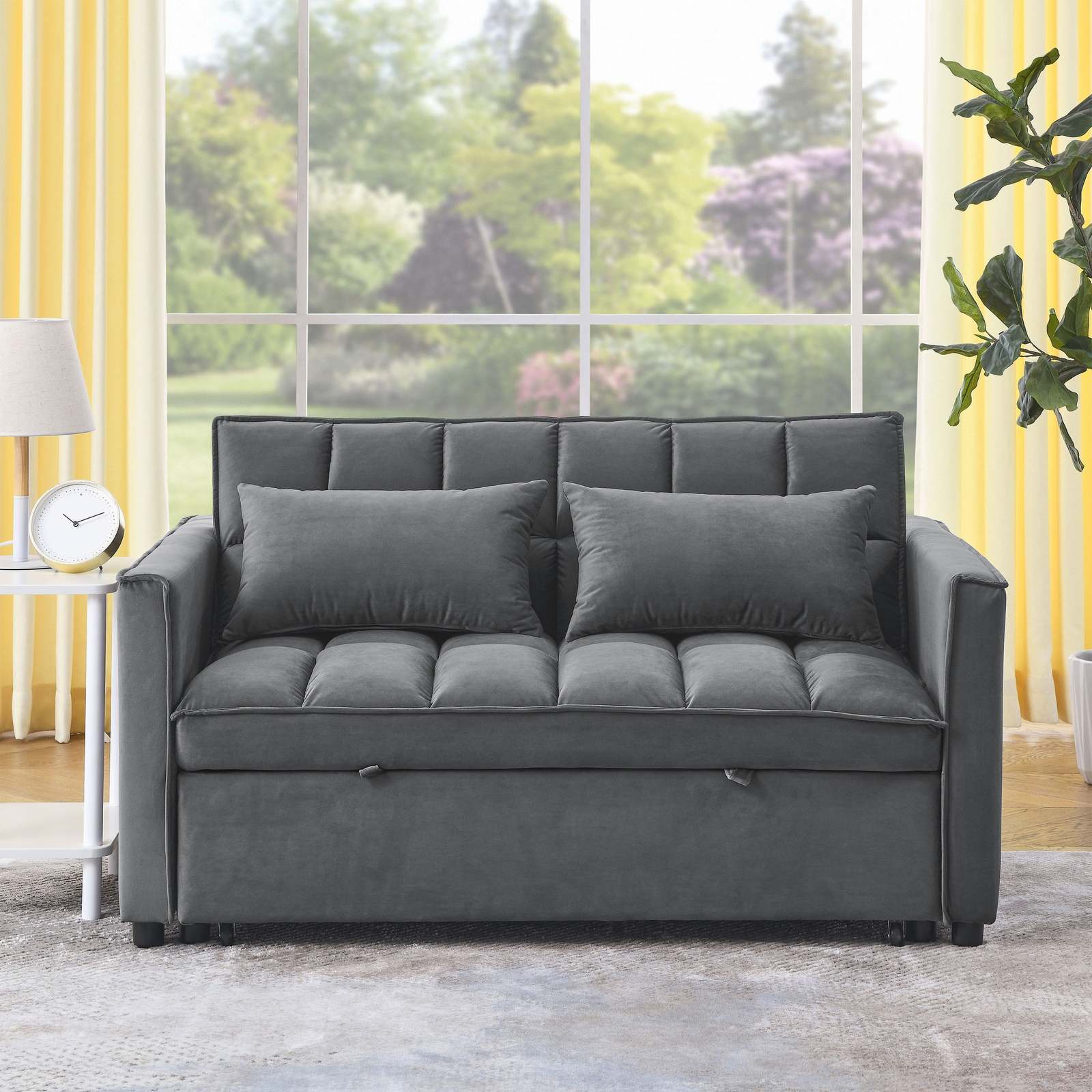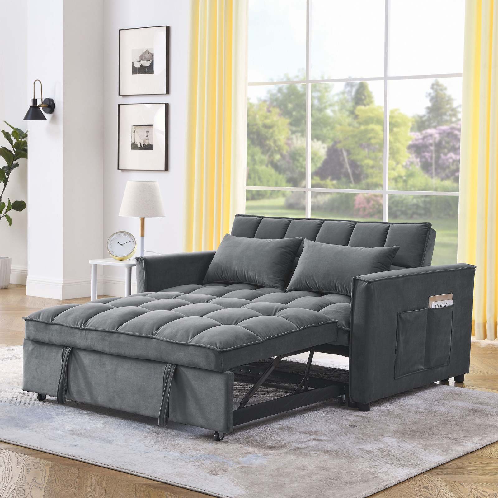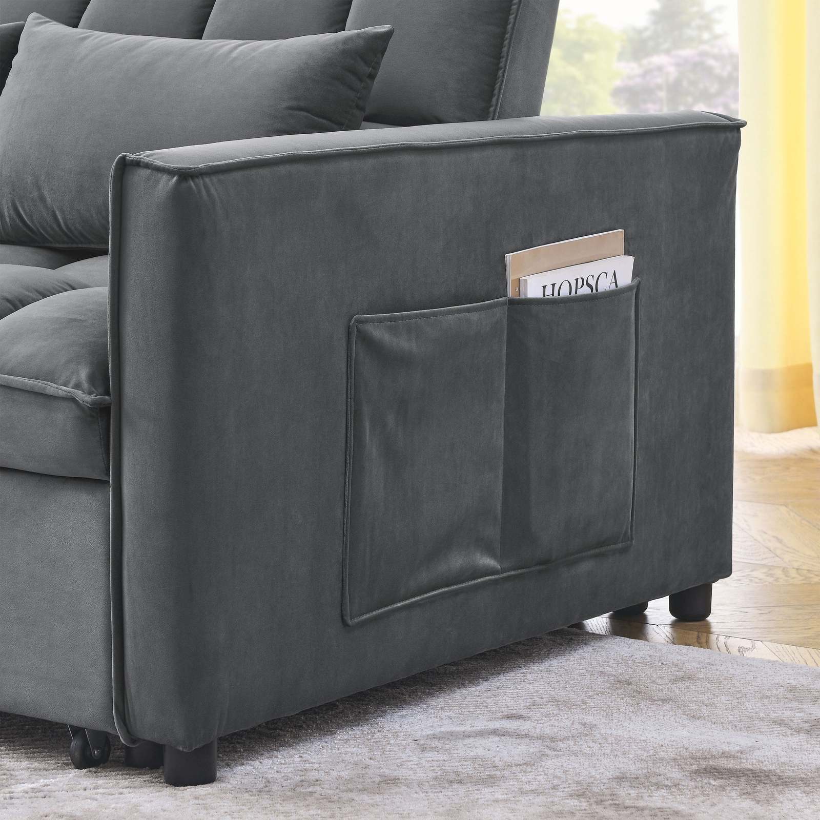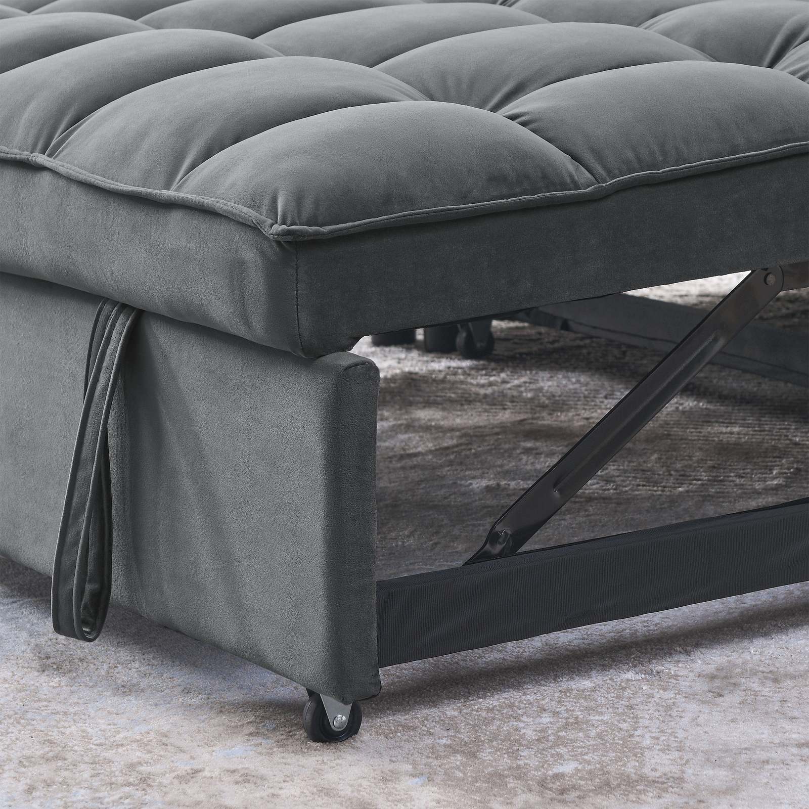 a??SOFT VELVET FABRIC: The surface of the sofa bed is made of high quality velvet fabric, which is comfortable to the touch and not easy to wrinkle. The seat cushion is filled with high-density sponge, which is comfortable to sit on and not easy to sink in for a long time. The classic, low-key design style adds a unique warmth to your home.