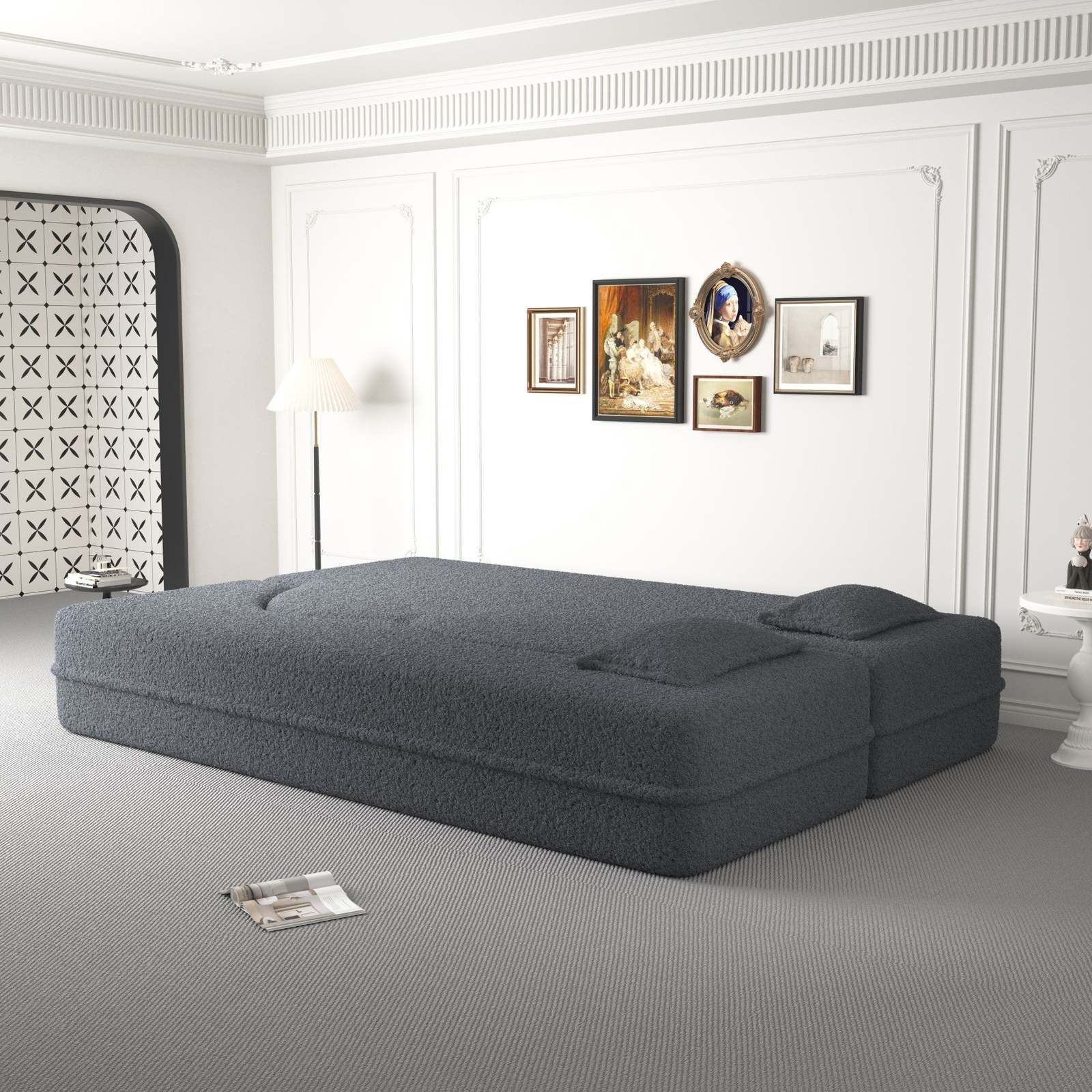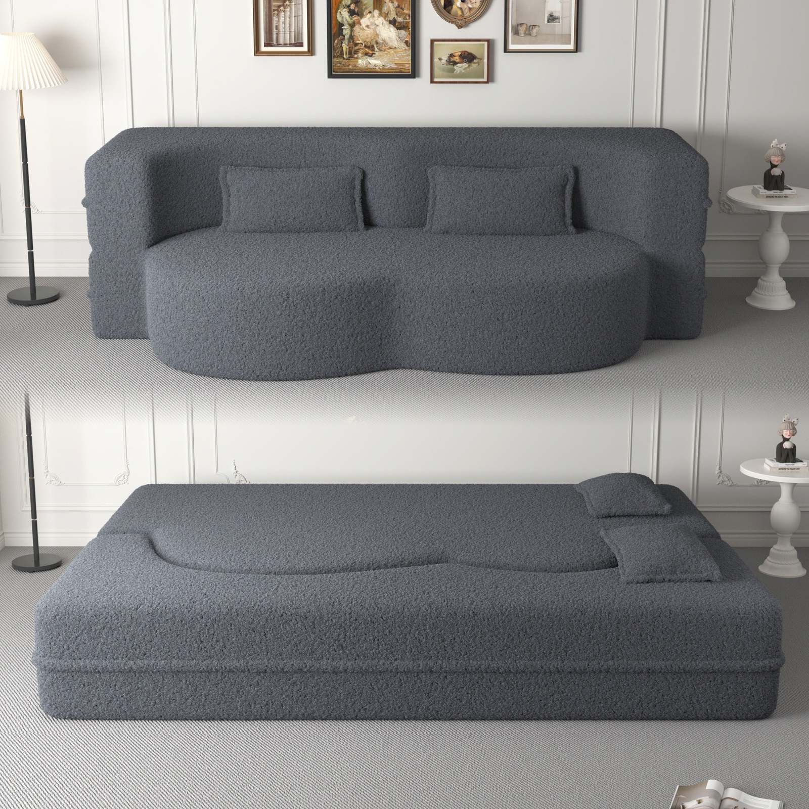 Grey Sofa Bed: Modern, Full-Size Folding Mattress