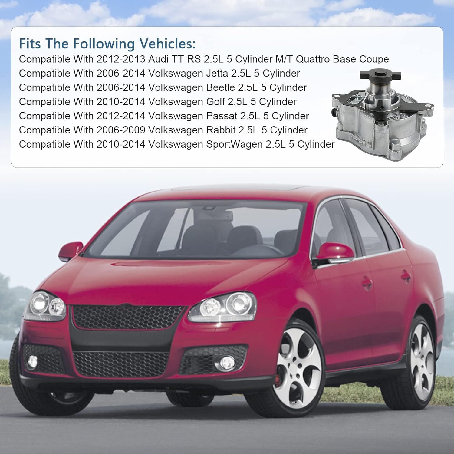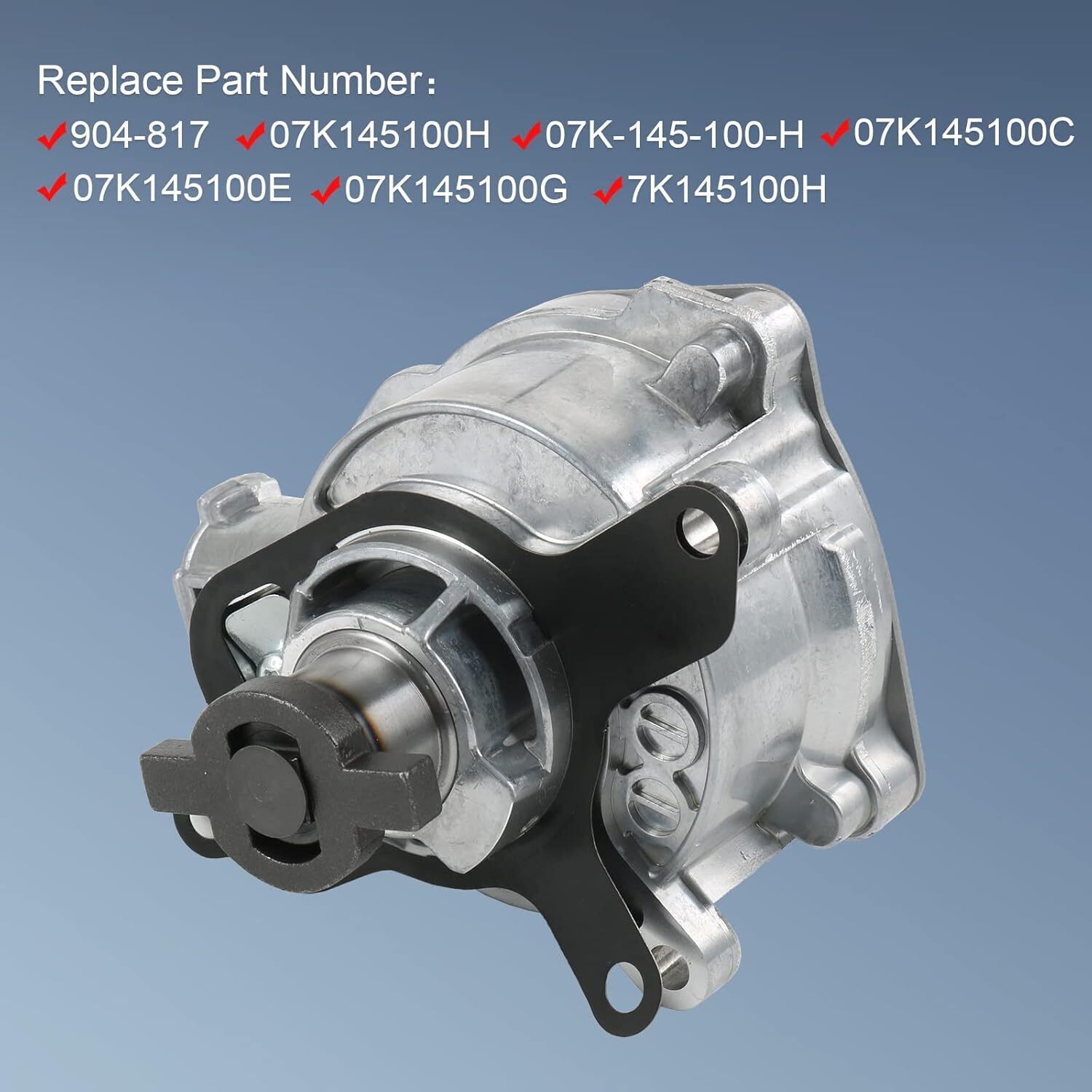 [COMPATIBLE WITH] Compatible with 2012-2013 Audi TT RS 2.5L 5 cylinder M/T Quattro Base Coupe. Compatible with 2006-2014 Volkswagen Jetta 2.5L 5 cylinder, compatible with 2006-2014 Volkswagen Beetle 2.5L 5 cylinder, compatible with 2010-2014 Volkswagen Golf 2.5L 5 cylinder, compatible with 2012-2014 Volkswagen Passat 2.5L 5 cylinder, compatible with 2006-2009 Volkswagen Rabbit 2.5L 5 cylinder, compatible with 2010-2014 Volkswagen SportWagen 2.5L 5 cylinder. [REPLACE PART NUMBER] 904-817, 07K145100H, 07K-145-100-H, 07K145100C, 07K145100E, 07K145100G, 7K145100H. Please check the part number and fitment before placing order. [HIGH QUALITY] The brake vacuum pump is made of high quality material for high precision and durability, ensure long time to use. [FUNCTION] The vacuum pump aims to provide a vacuum to several different places in the engine bay. The vacuum pump provides a vacuum to the booster on power brake, ensure that the booster stays under constant vacuum and provide adequate braking force. Emissions solenoids and turbocharger wastegate actuators also require a vacuum to perform as intended. Replace brake vacuum pumps in time will increase the engine and vehicle life. [LEAK-FREE] This brake vacuum pump is built to meet or exceed OE specifications, undergone a rigorous testing before shipping to prevent leak and maintain proper vacuum pressure. Direct replacement for a proper fit, comparable in fit, form and function to the original part.