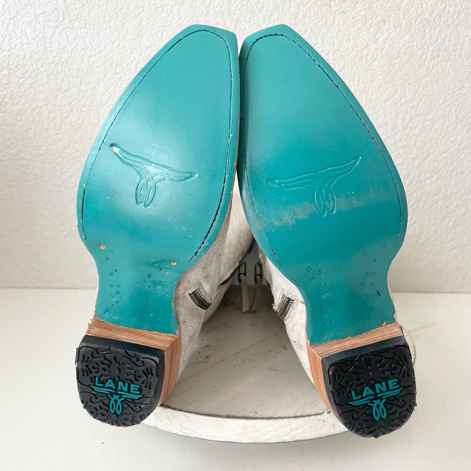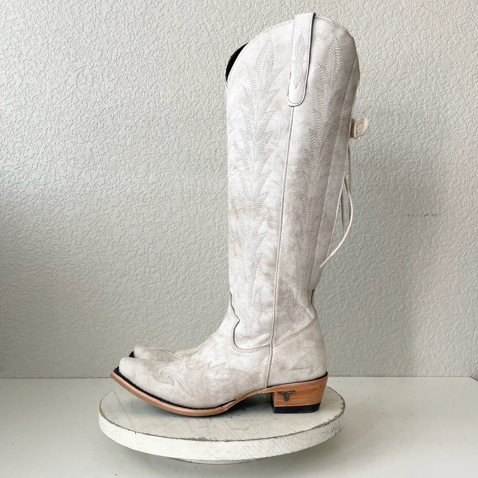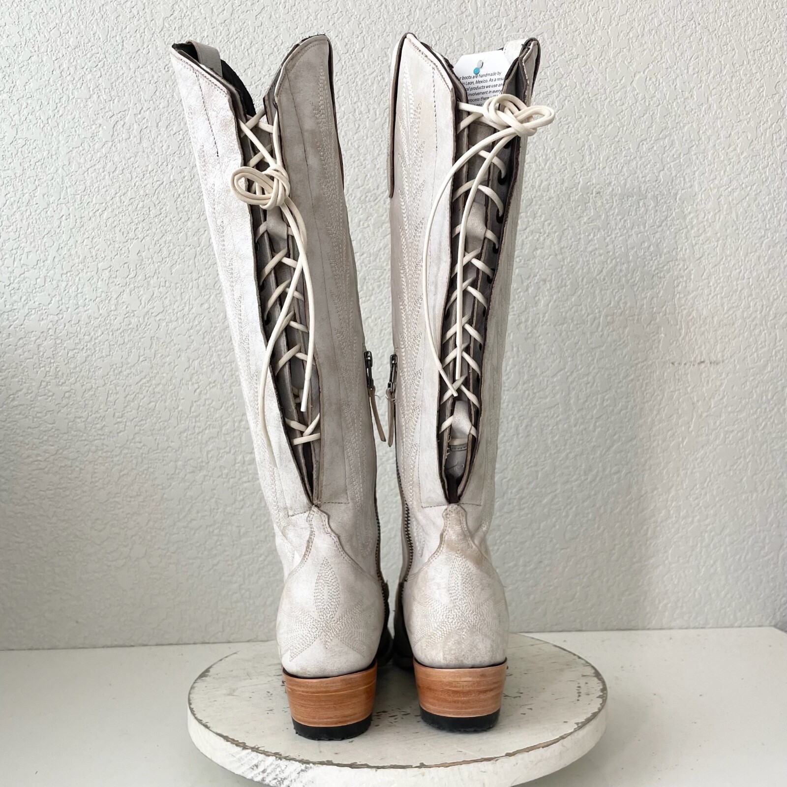 Lane LEXINGTON Knee High Womens Cowboy Boots 6.5 White Western Cowgirl Lace Up