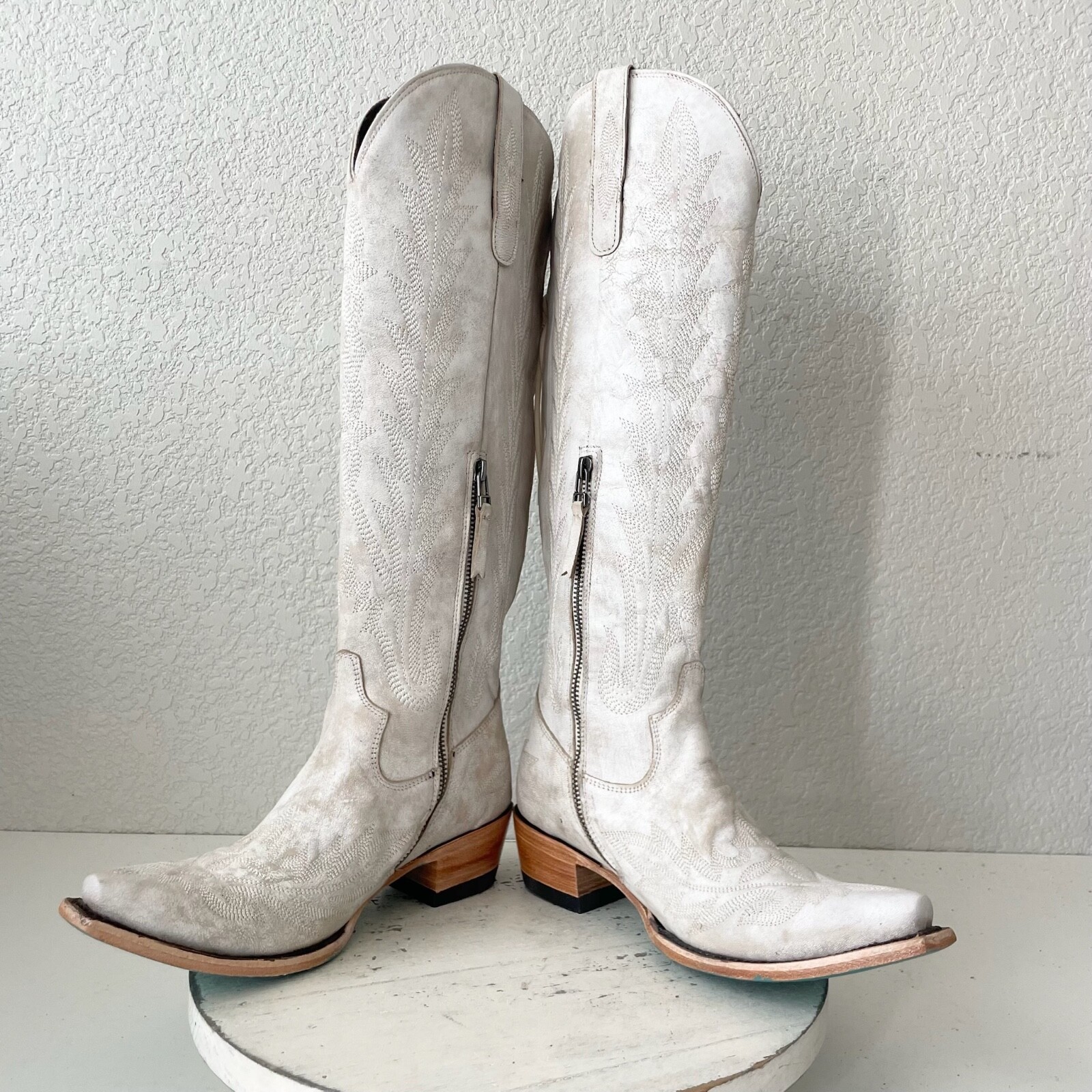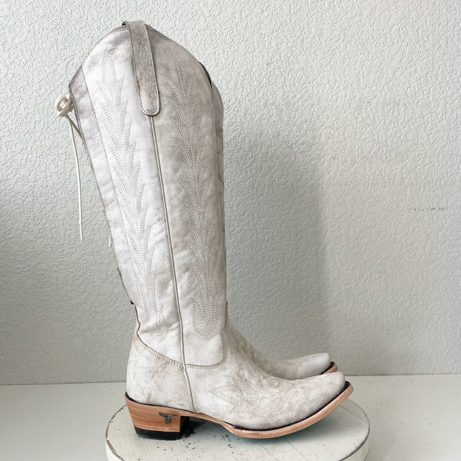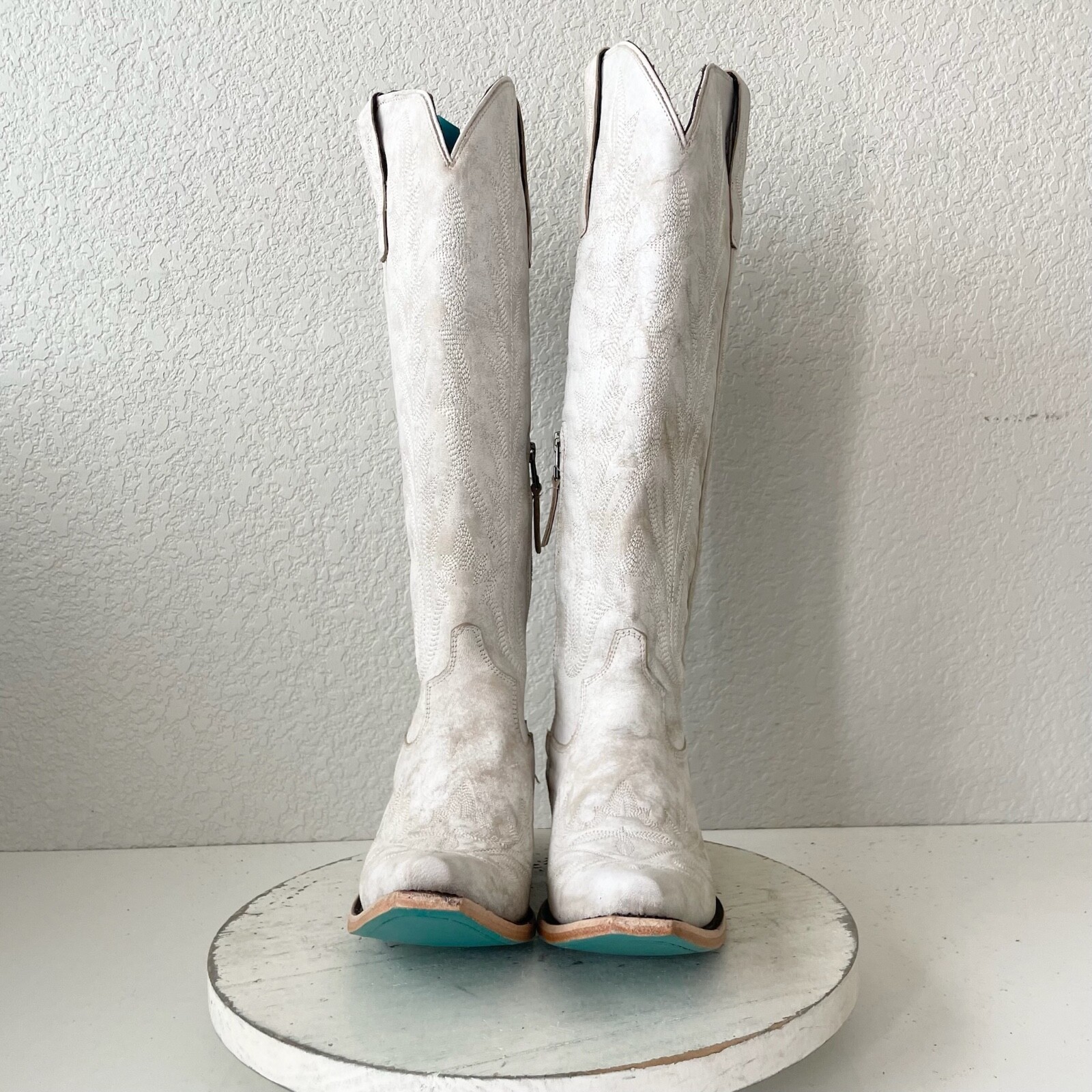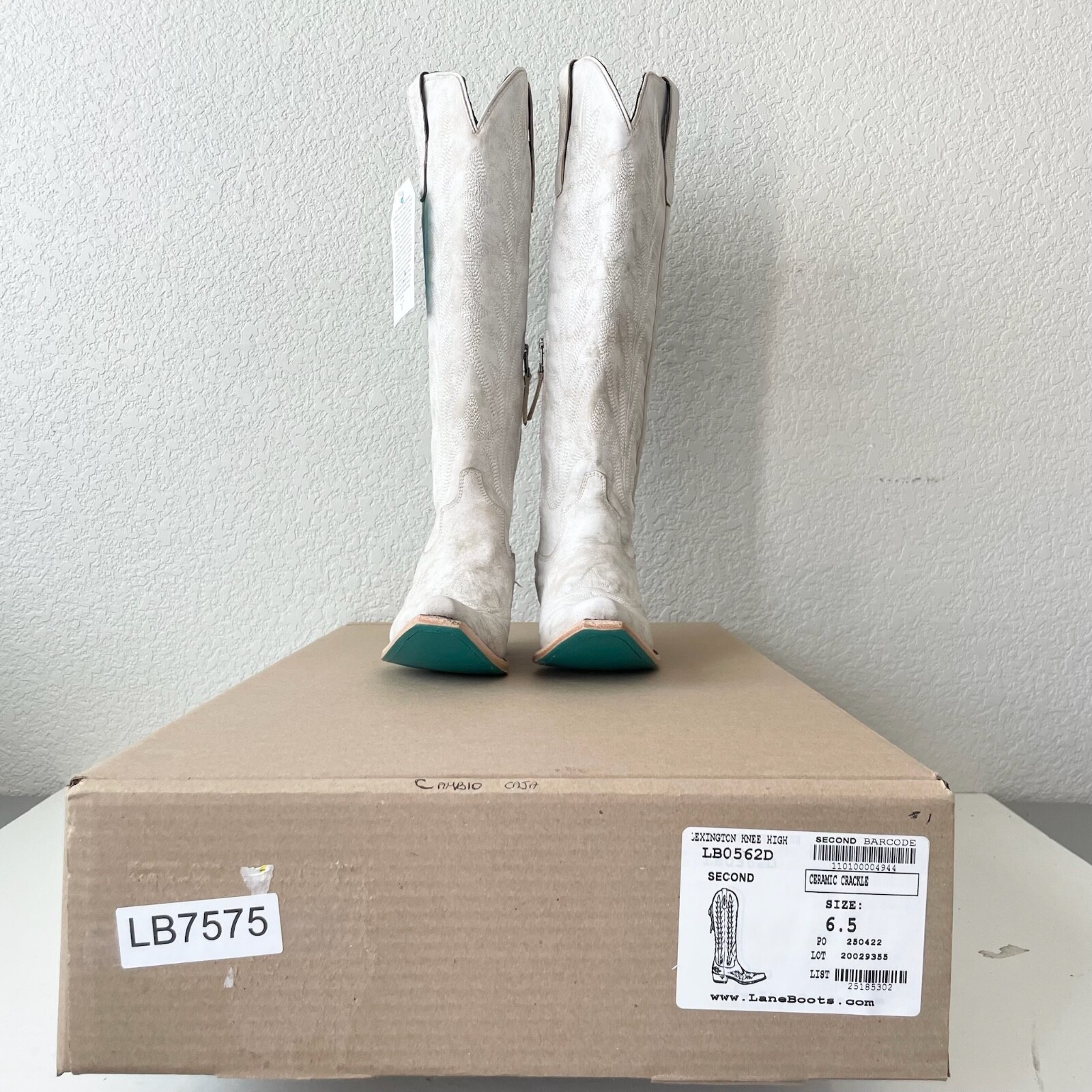 Lane LEXINGTON Knee High Womens Cowboy Boots 6.5 White Western Cowgirl Lace Up