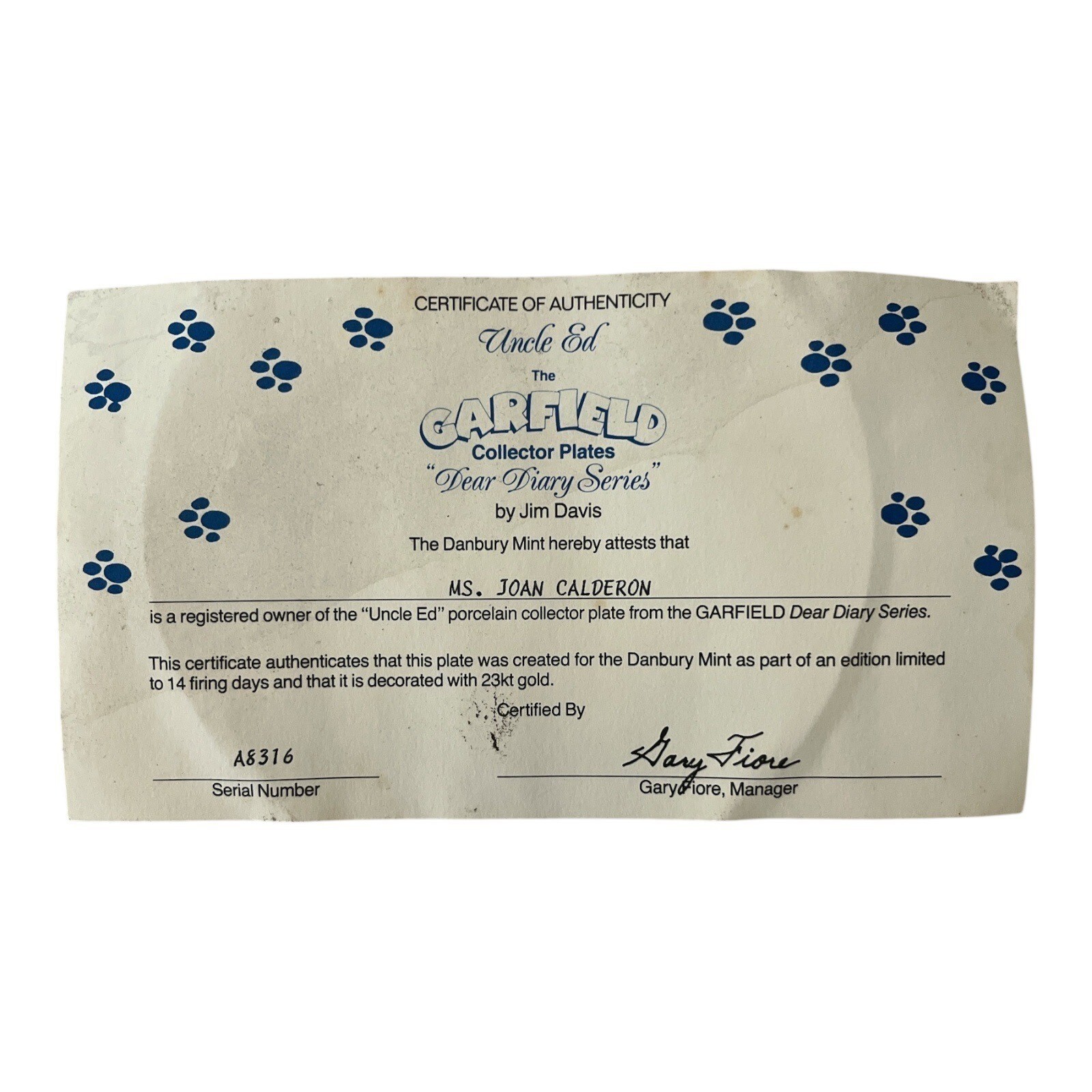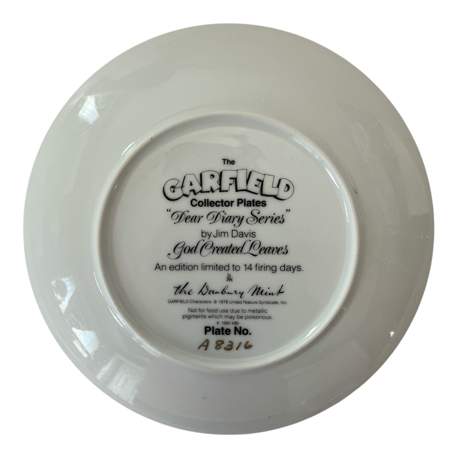 Garfield Collector Plate ? ?God Created Leaves? ? Dear Diary Series ? Danbury Mint ? Limited to 14 Firing Days