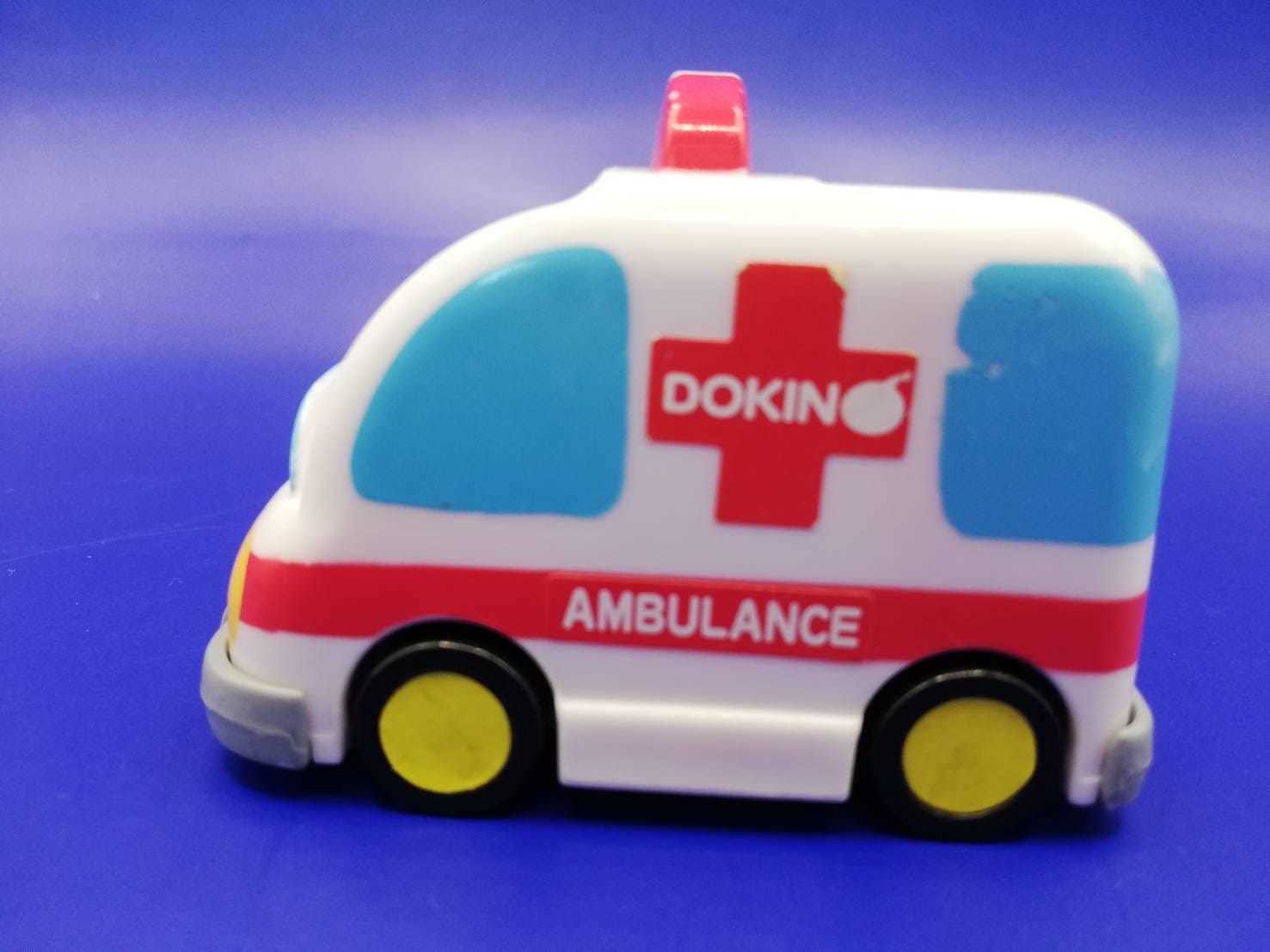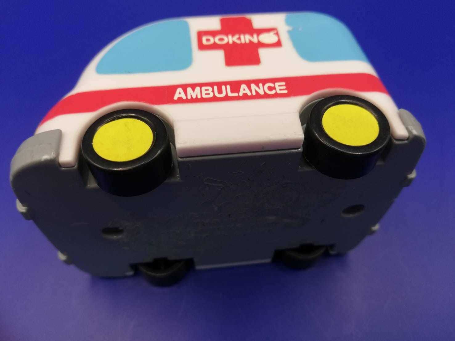 Compact ambulance toy with printed ?DOKIN? + cross logo