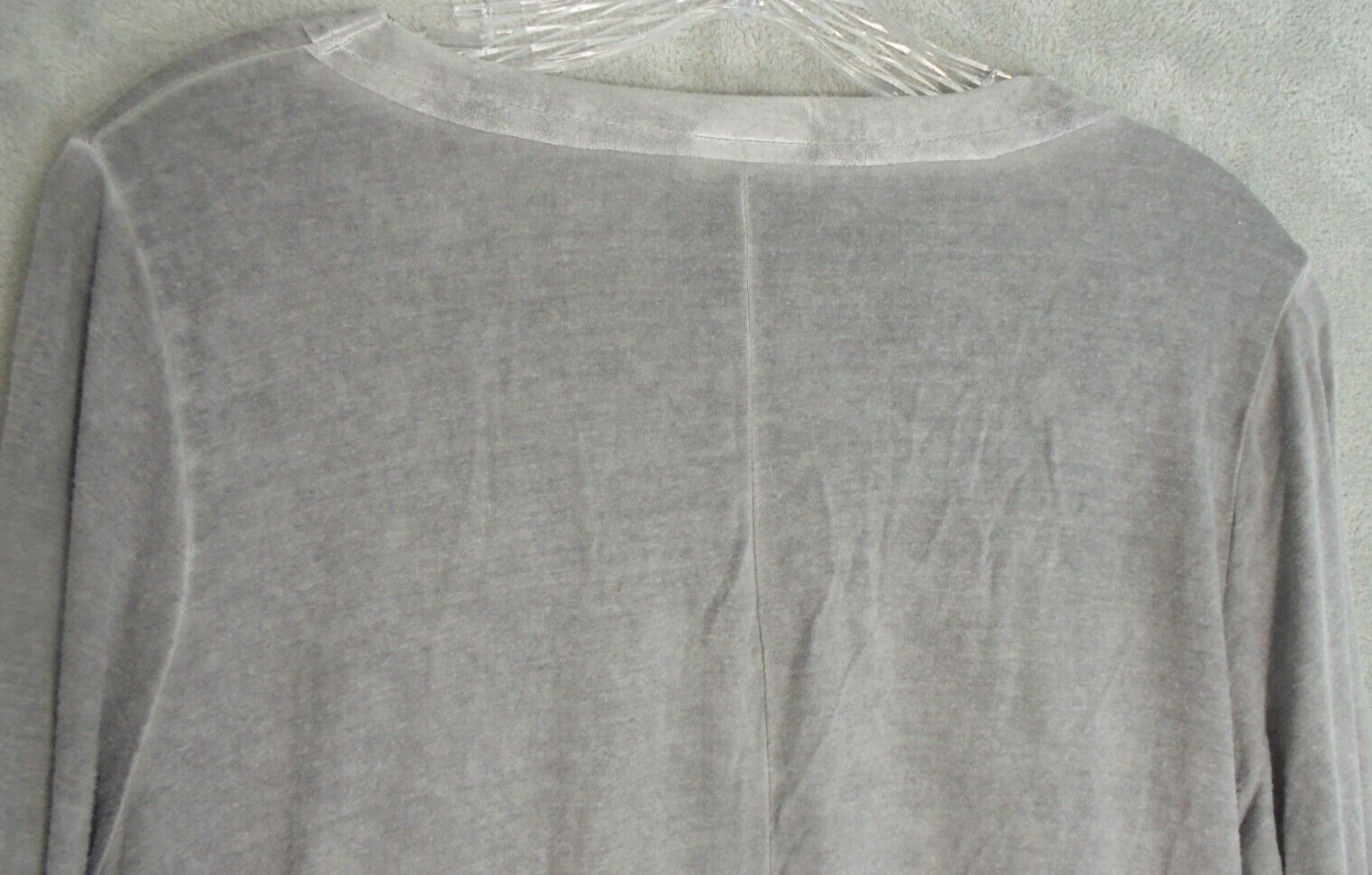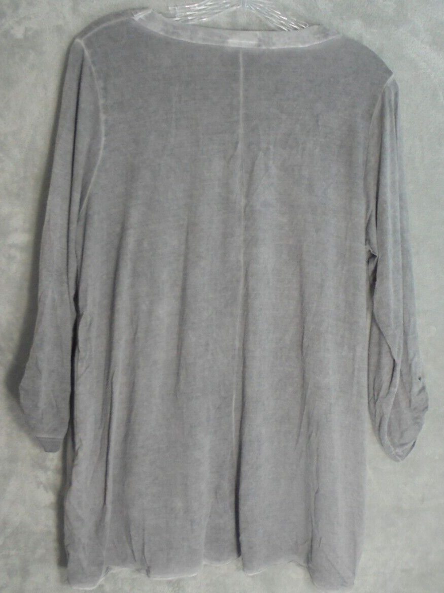 Laura Torelli Button Shirt Womens Top size 38/40 L XL Gray 3/4 Sleeves Bling