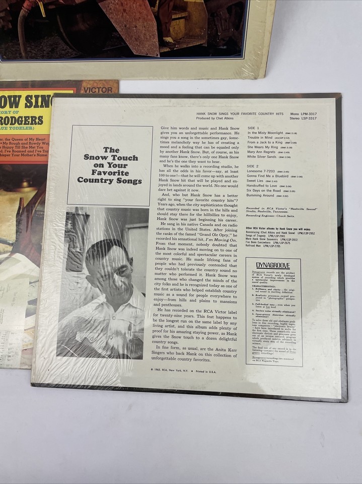 Lot of 3 x HANK SNOW - Tracks Trains - In Memory of Jimmy Rodgers - Sings Your Favorite Country Hits LP Vinyl Record (s)