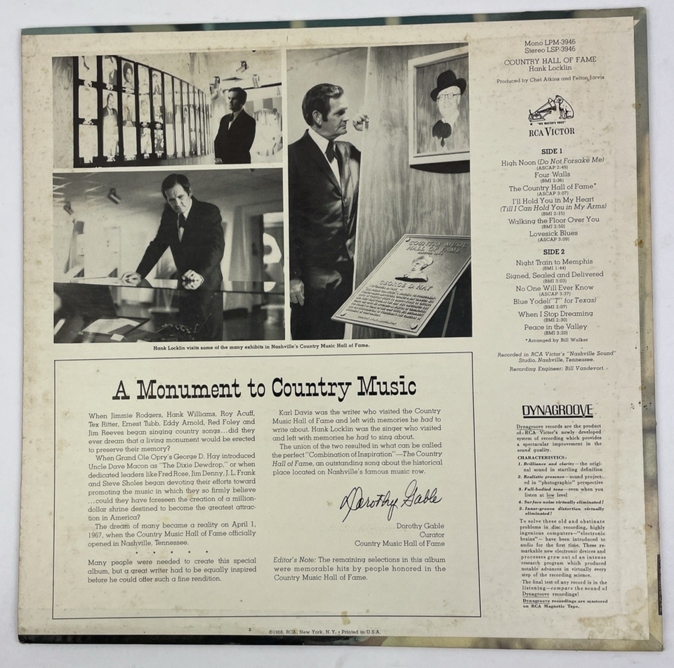 HANK LOCKLIN " Country Hall Of Fame " Vinyl LP Record LSP 3946 RCA Victor Records