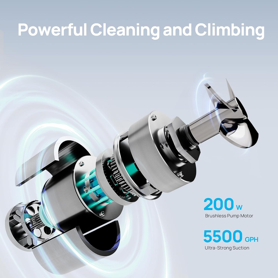 POWERFUL CLEANING: A powerful 200W brushless motor generates 5500GPH of suction power, filtering and trapping debris in its ultra-fine 150?m filter basket.