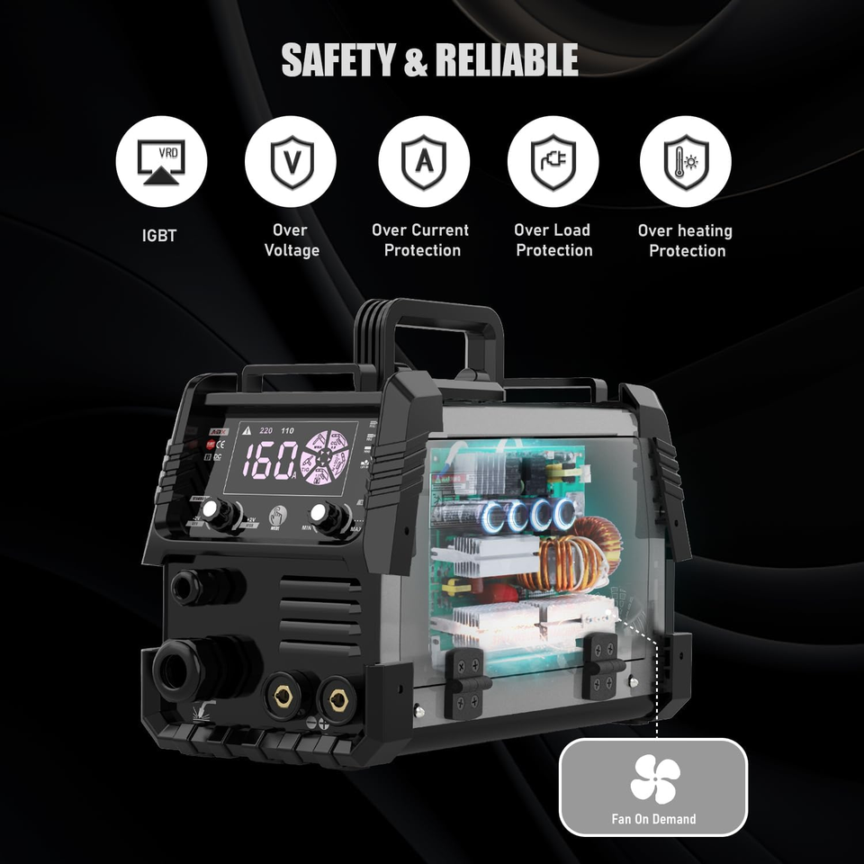 5 in 1 MMA 110V/220V Dual Voltage with Tape Measure, IGBT Inverter, Digital Scr