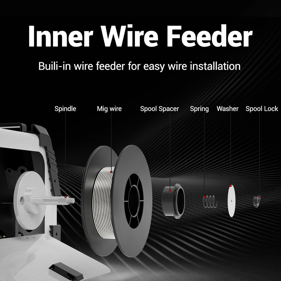 ?COLLABORATIVE CONTROL?The 5-in-1 welder adopts IGBT and integrated wire feeding technology to automatically match the recommended voltage and wire feeding speed (current). Let both beginners and professionals use it. Safety protection: The welder comes with a MAG welding gun and power cord, which can be welded after unpacking the box, and it is easy to use. Built-in overcurrent protection, overload protection, overheating and overvoltage functions can extend the service life of the machine. Note: Do not turn on the power until the screen is turned off and the fan stops