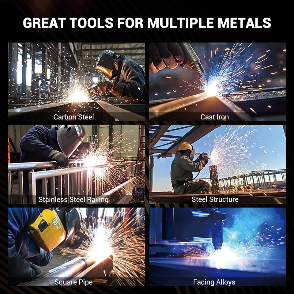 ?5-IN-1 WELDER?The MAG160 MIG welder has multi-function for MMA Stick/GAS MIG /MAG/Gasless FLUX-CORED/LIFT TIG/Spot. Maximum current is 160 amps, supporting gasless flux-cored mig wire and solid mig wire, and can use 0.030" - 0.047"(0.8 - 1.2mm) flux core wire size, 0.023" - 0.039"(0.6 - 1.0mm) solid wire size, MMA Stick can use 6013/7018 welding rods. The flux core welder excels in welding stainless steel, carbon steel, and even thicker steel. This Multi MIG welder can weld various of metals. It can also weld stainless steel, alloy steel, iron. Meeting diverse welding needs