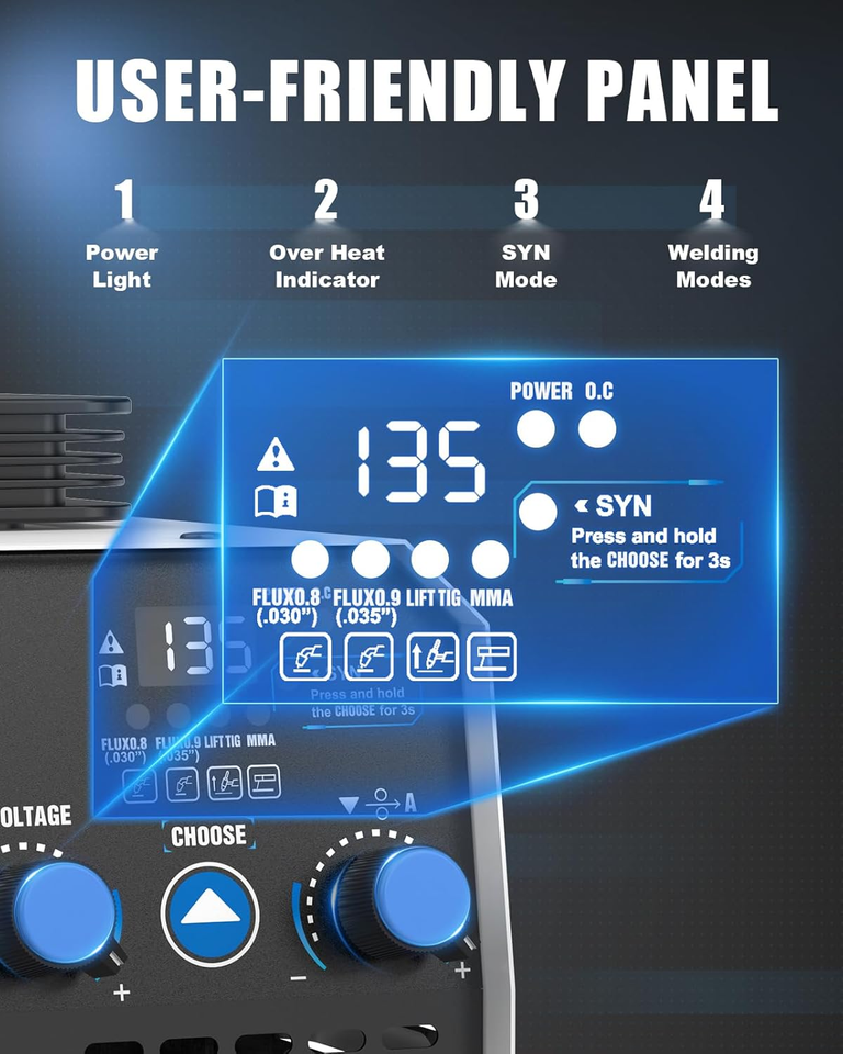 ?SYN CONTROL EASY TO OPERATE?: With SYN control, this welder automatically adjusts the current and voltage based on the selected wire diameter, ensuring optimal settings. Its user-friendly design and smooth wire feeding make it easy for beginners and professionals alike to operate effectively.