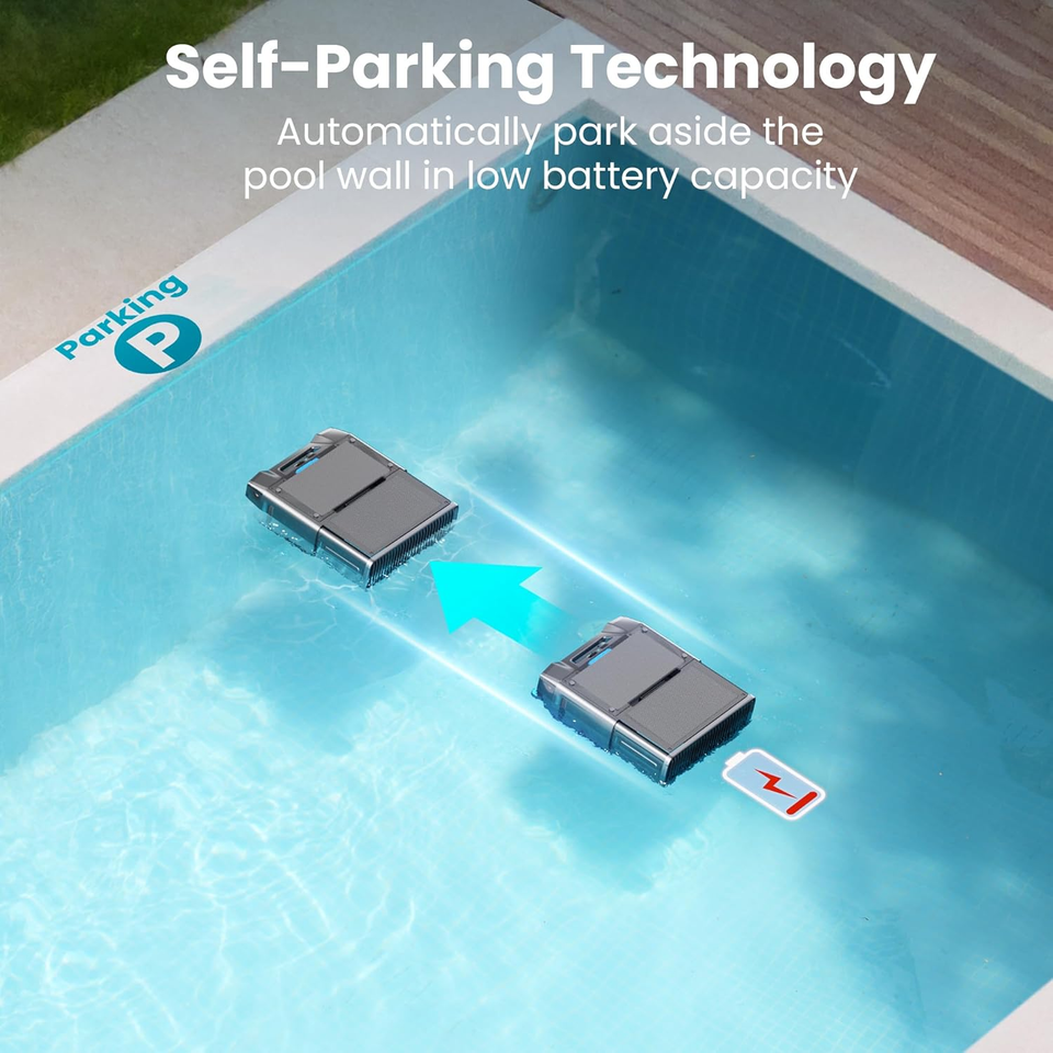 INTELLIGENT OBSTACLE AVOIDANCE: Our automatic above ground pool skimmer equipped with advanced intelligent navigation and ultrasonic radar detection, the pool cleaner detects and avoids obstacles in real-time, planning optimal cleaning routes with no manual intervention needed. Just sit back and enjoy your pool.