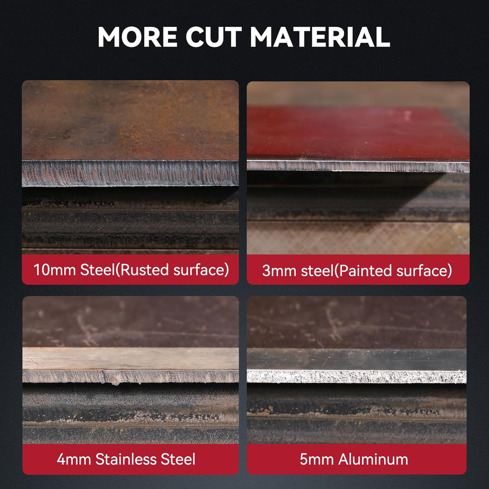 ?Powerful Portable?Utilizing advanced IGBT inverter technology, 50/60Hz high-frequency pilot arc, dual voltage 120/240V, with a 60% duty cycle. The maximum cutting thickness of ARCCAPTAIN 55A plasma cutter can reach up to 3/4" @55A 240V 60PSI, while ideal clean cut at 1/2" @35A 120V 55PSI. Moreover, the plasma cutting machine only weighs 19.8LB compact, we also provide a shoulder strap, make it easy to carry from one place to another.