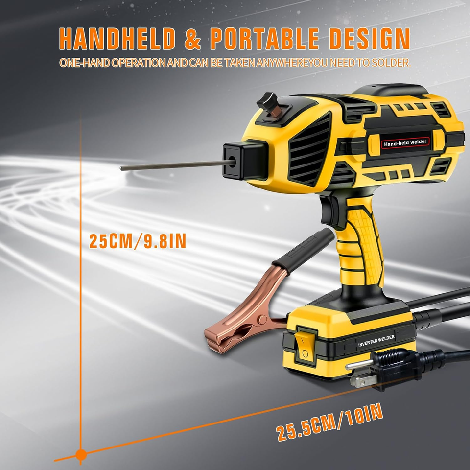 PORTABLE HANDHELD WELDING MACHINE: YesRight Welding Machine measures is 9.8*10 inch, compact and portable design makes it easy to use in a variety of work environments without taking up too much workbench space. Electric welder weighs only 3.9 pounds and is great for working at heights, which can be easily operated with one hand, allowing you to feel the convenience of a lightweight machine