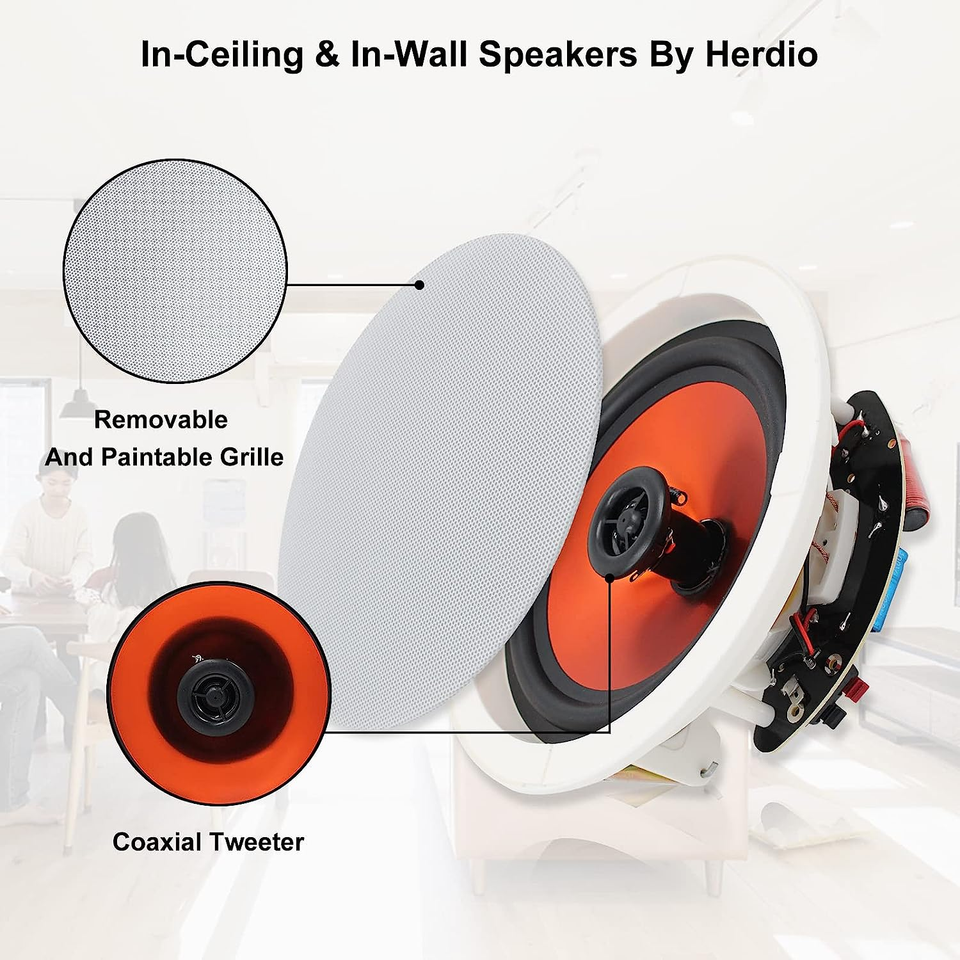 Herdio ceiling speakers have built-in high definition digital sound effects and impressive superior sound effects. You will be able to stream audio from your smart devices and enjoy the clear, pure, superior syllables.