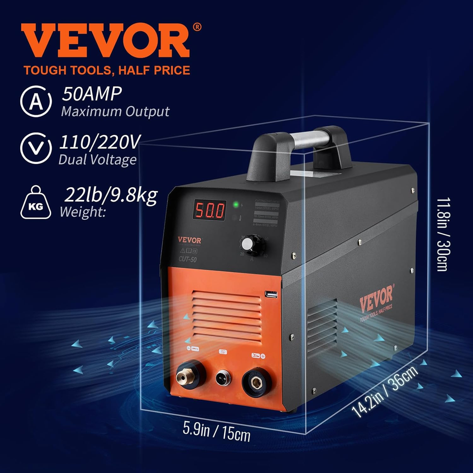 VEVOR Plasma Cutter, 50Amp, Air Cutting Machine with Plasma Torch, 110V/220V Dua