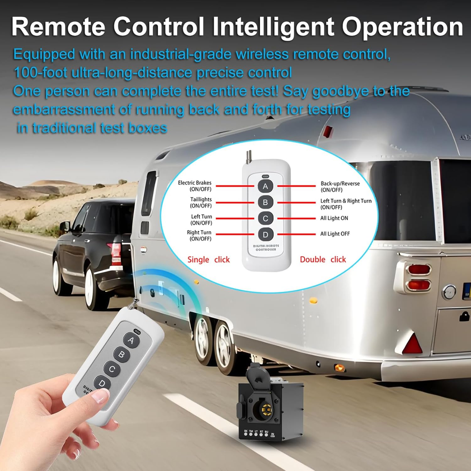 Wireless Remote Control Operation, Compatibility Round/Flat Pin, with 7-Pin Trailer Light Tester Plug, for Testing Trailer Taillights
