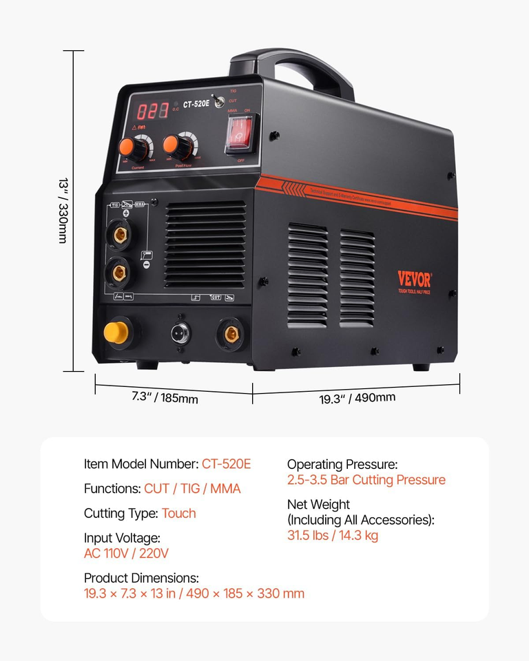 VEVOR 3 in 1 Plasma Cutter Welder Machine, CT-520E TIG/MMA Plasma Cutter Combo M