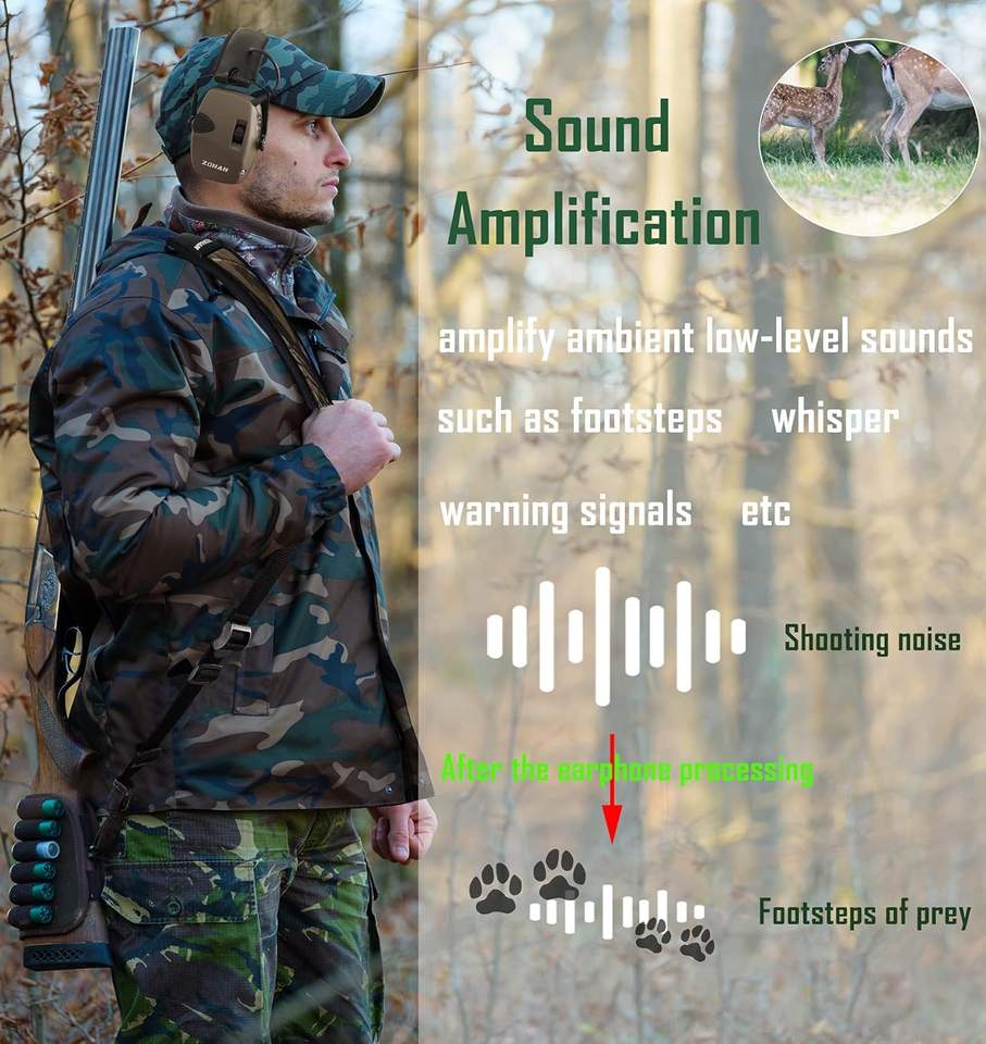 {SHOOTING EARMUFFS} Built in Ambient Sound Amplifier - ZOHAN ear protections feature an upgraded ambient sound amplifier, equipped with 2 high-gain microphones that actively pick up sound