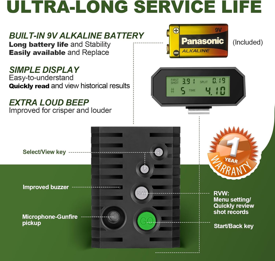 {SHOT TIMER} FOUR SHOOTING MODES - Built-in PAR Timer - This competition shot timer has 4 buttons. Set up for Toggle Between Modes like "Instant Start", "Delay Start (3s delay)", "PAR Instant" or "PAR Delay" options to find your favourite mode. The built-in PAR timer ensures accurate timing for both delay and fixed functions. Whether you're training alone or in a group, our timer adapts to your training needs