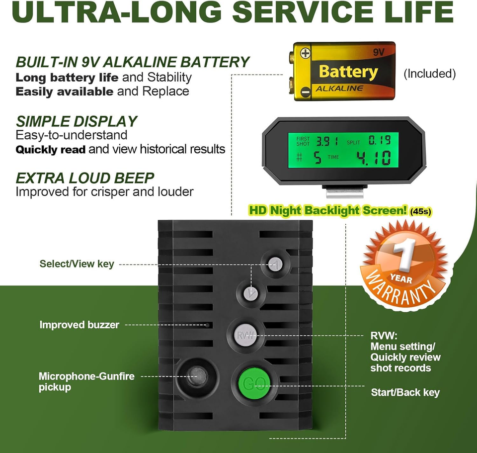 HIGHLY RECOMMEND FOR SHOOTING LOVERS - Designed to cater to diverse needs, our shooting timer is great for training at the range, use in shooting clubs, competition, RO use and personal shooting practice. Suitable for most guns