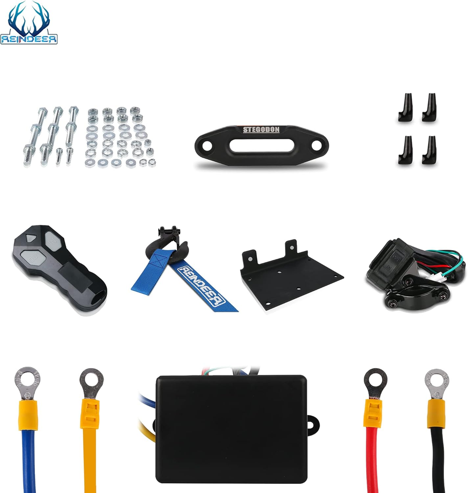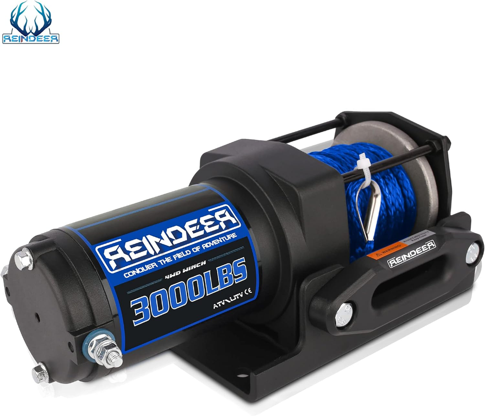 REINDEER New 12V Winch 3000 Lb Load Capacity Electric Winch Kit Synthetic Rope w