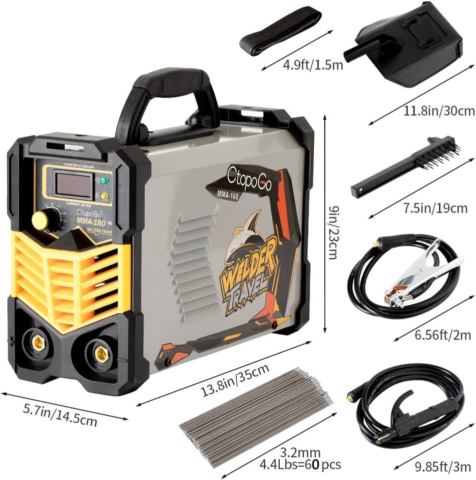 CtopoGo 160A MMA Welder Welding Machine has a high quality design and spatter less in welding. We are proud to present you his Home Use MMA ARC welder come with LCD display, portable and lightweight arc welding machine is ideal for those that are learning to weld or those that want to make small repairs around the house.