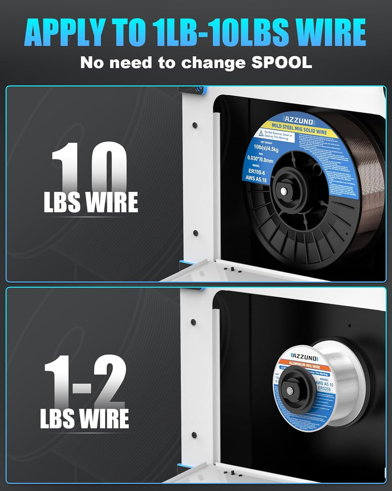 ?VARIETY WELDING WIRE OPTIONS?: The wire feed welder is compatible with 1 lb to 10 lbs wire spools and accommodates various wire diameters, including .030" solid wire, .030"/.035" flux core wire, and .040" aluminum wire. It's also compatible with E6013 electrodes for Stick Welding.