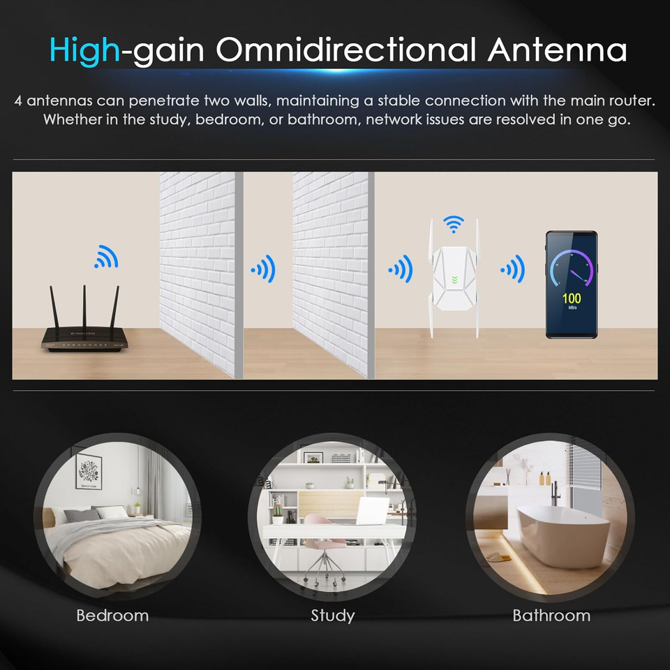 Wide Coverage Wall Penetration: The WiFi extender signal booster expands your network range, penetrating walls and eliminating dead zones ? perfect for large homes and multi-floor setups.