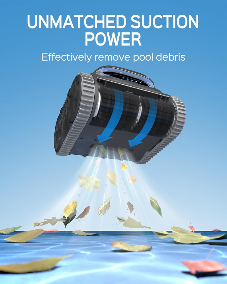 Double the Suction, Say Goodbye to Debris: Equipped with triple powerful motors and two robust roller brushes, effortlessly capturing dirt, sand, leaves, and debris. The special leak-proof design ensures efficient operation and prevents dirt or debris from being released back into the pool water, leaving your pool sparkling clean.