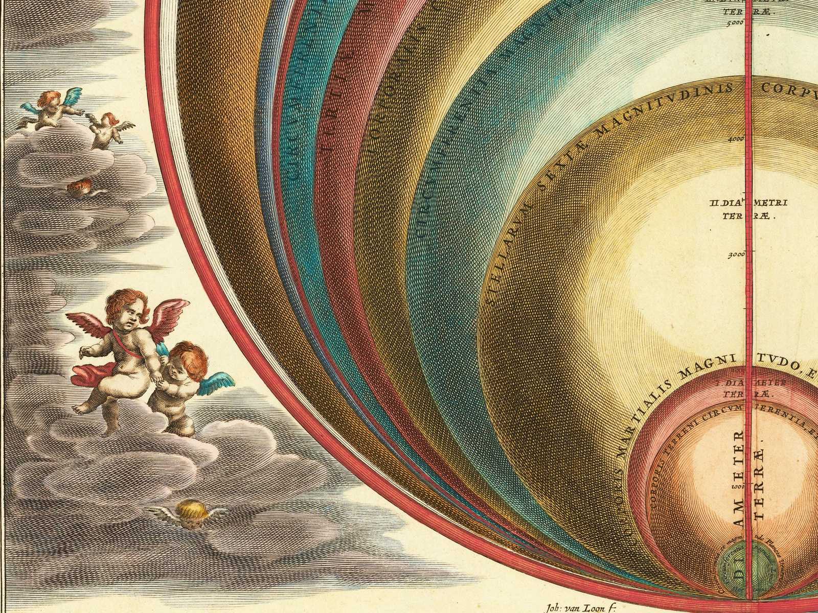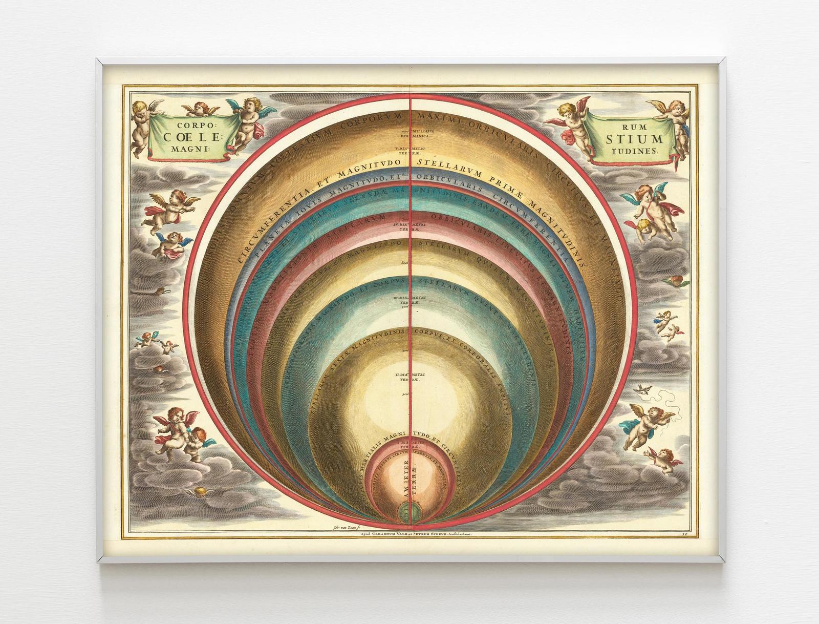 The Size of Celestial Bodies - 1661, Macrocosmic Harmony Map, Antique Astrology,