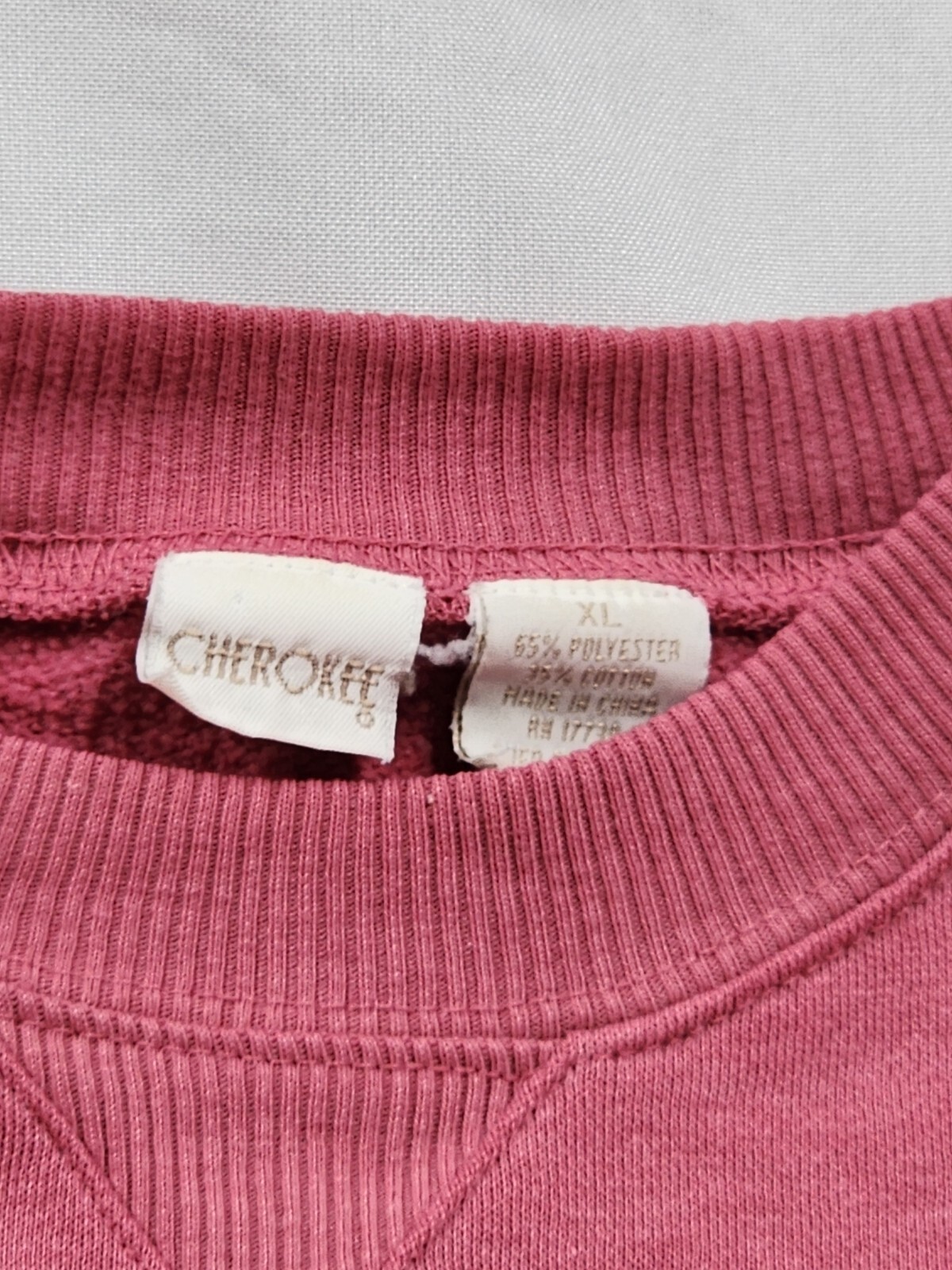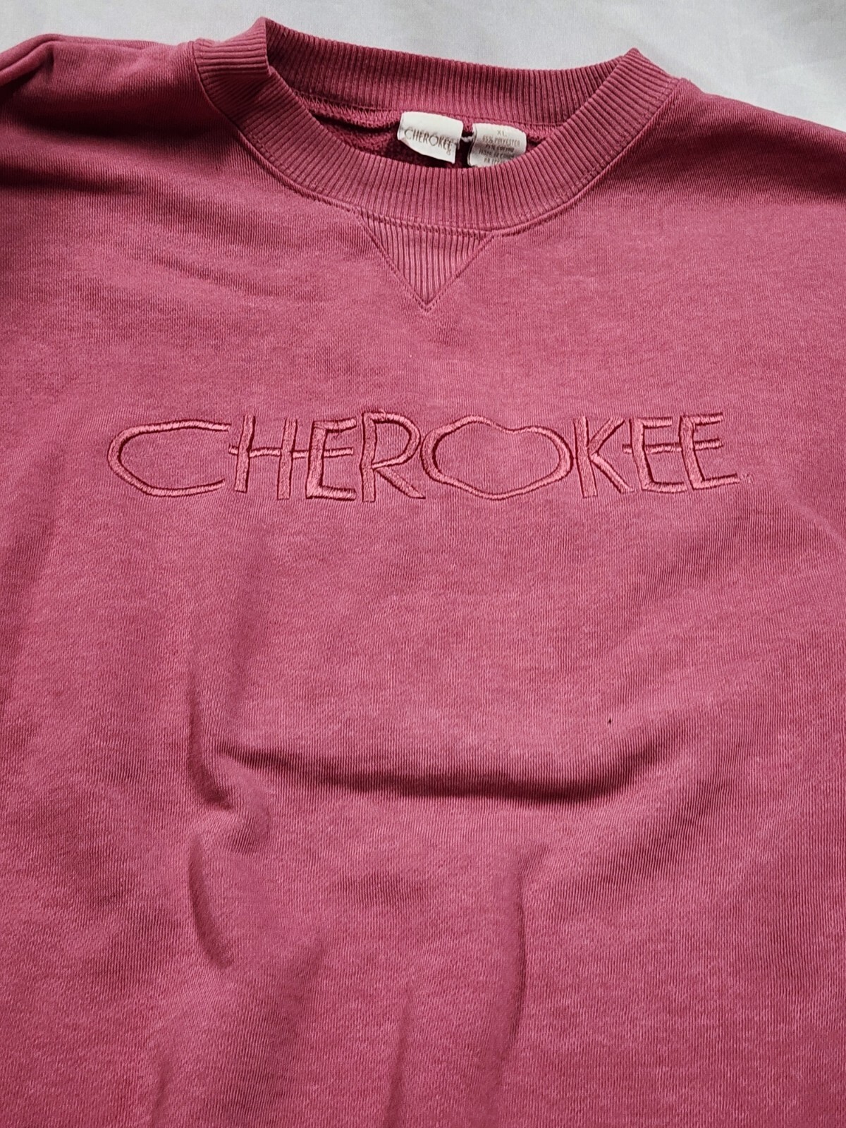 Vintage Cherokee Sweatshirt Spellout Logo Embroidered Salmon Pink XL