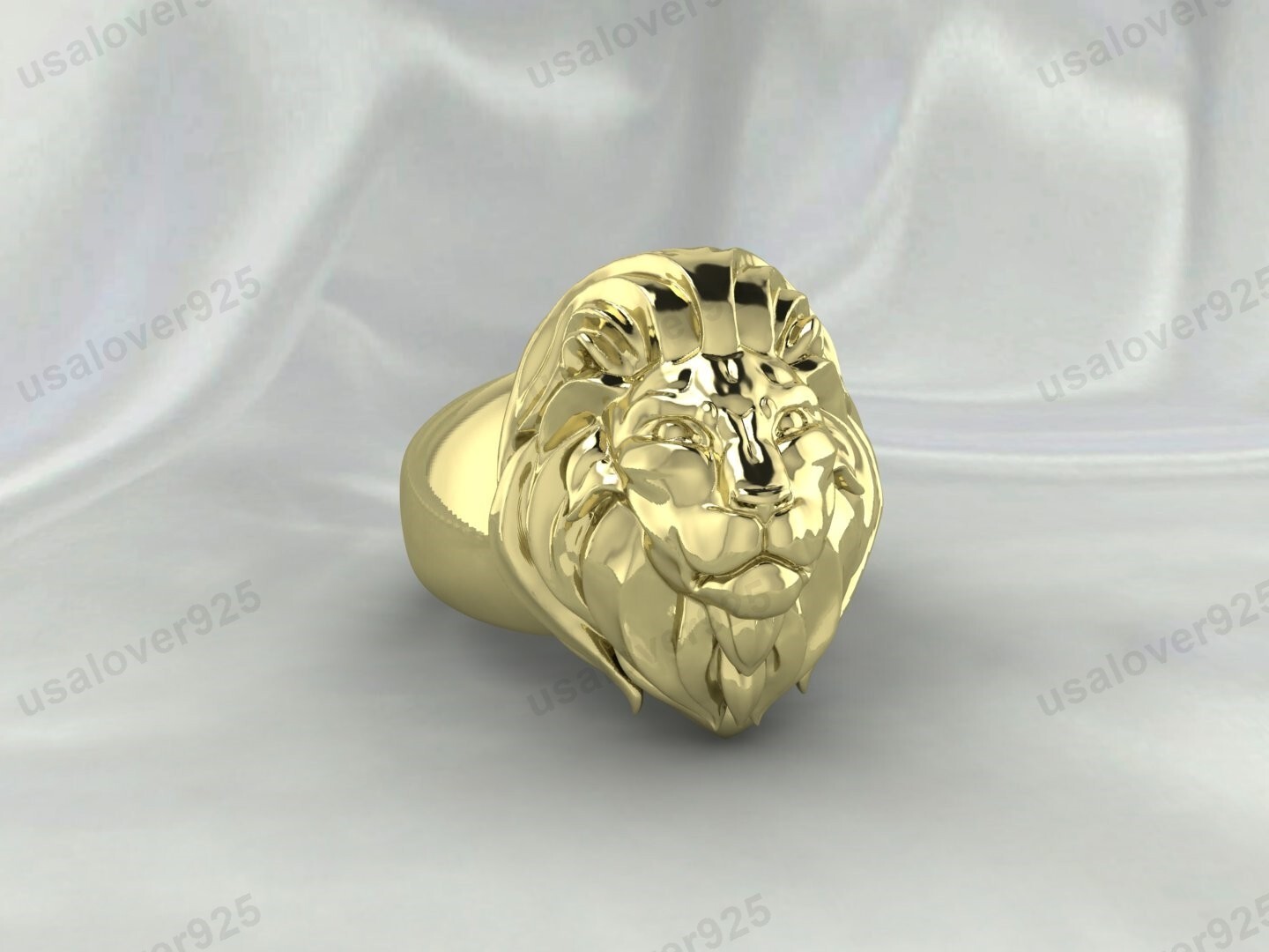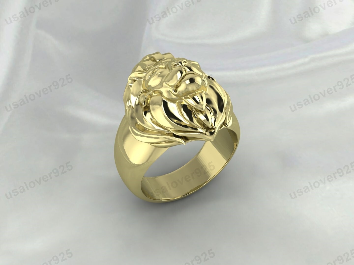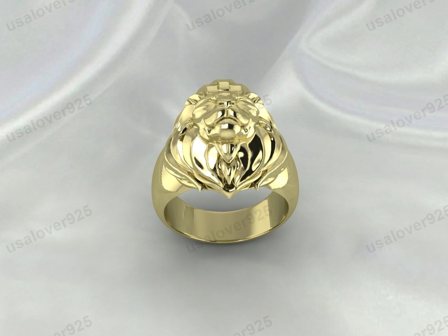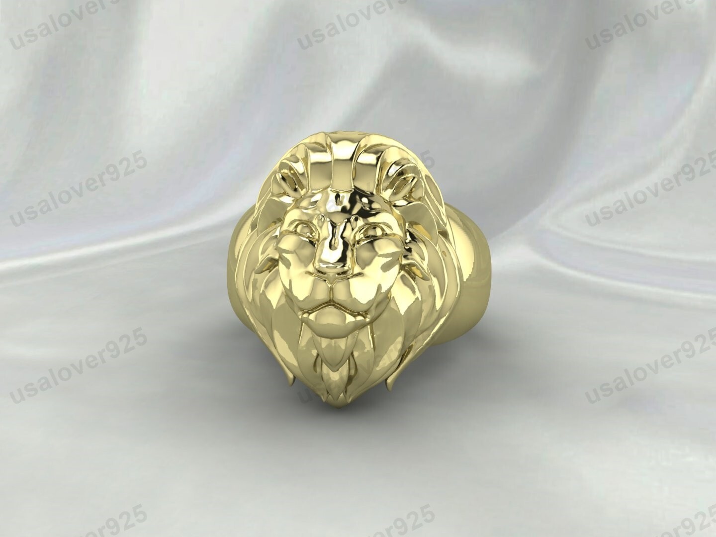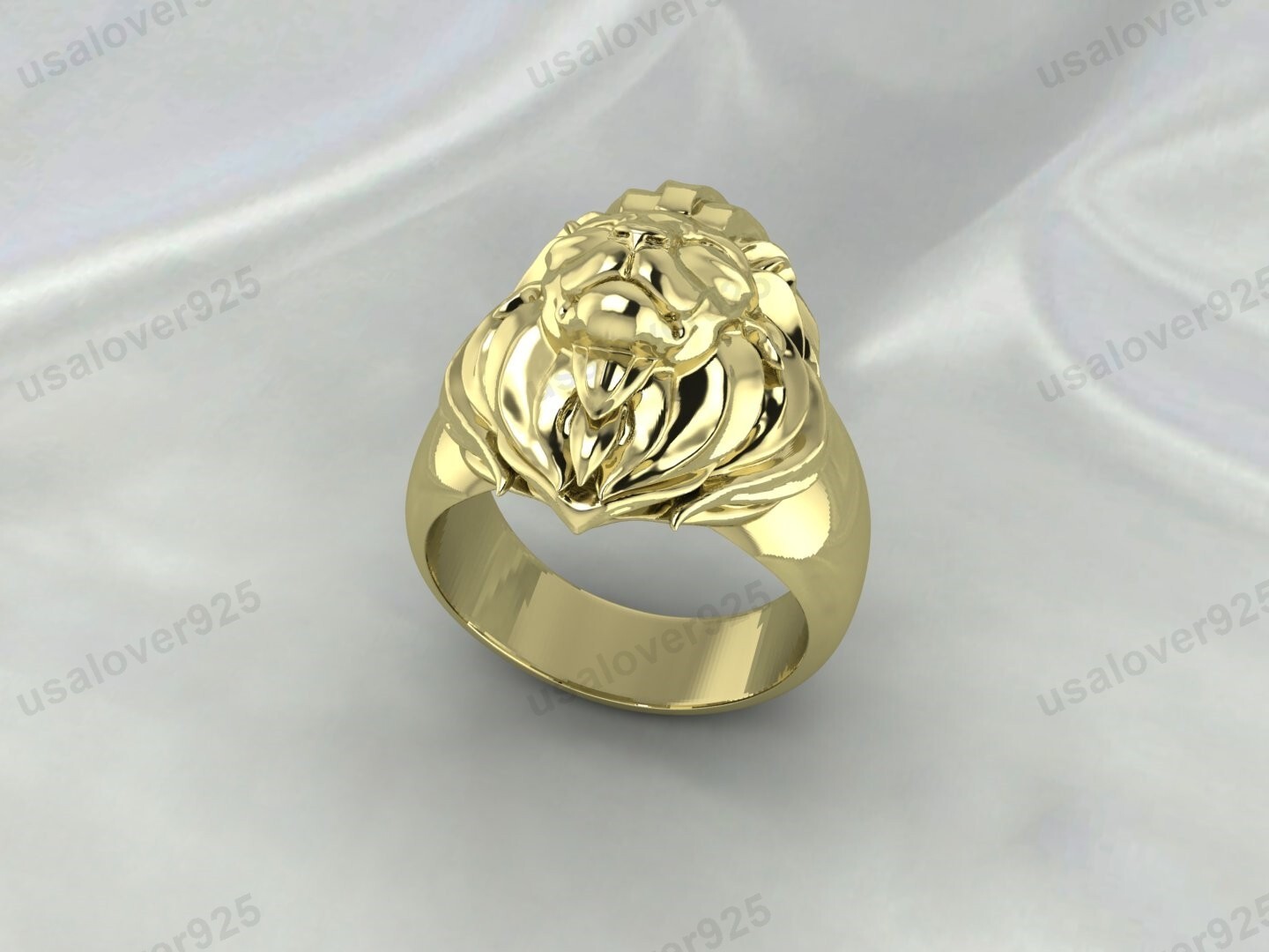 Loin Design Signet Mens Modern Ring, High Quality Yellow Brass Handmade Jewelry