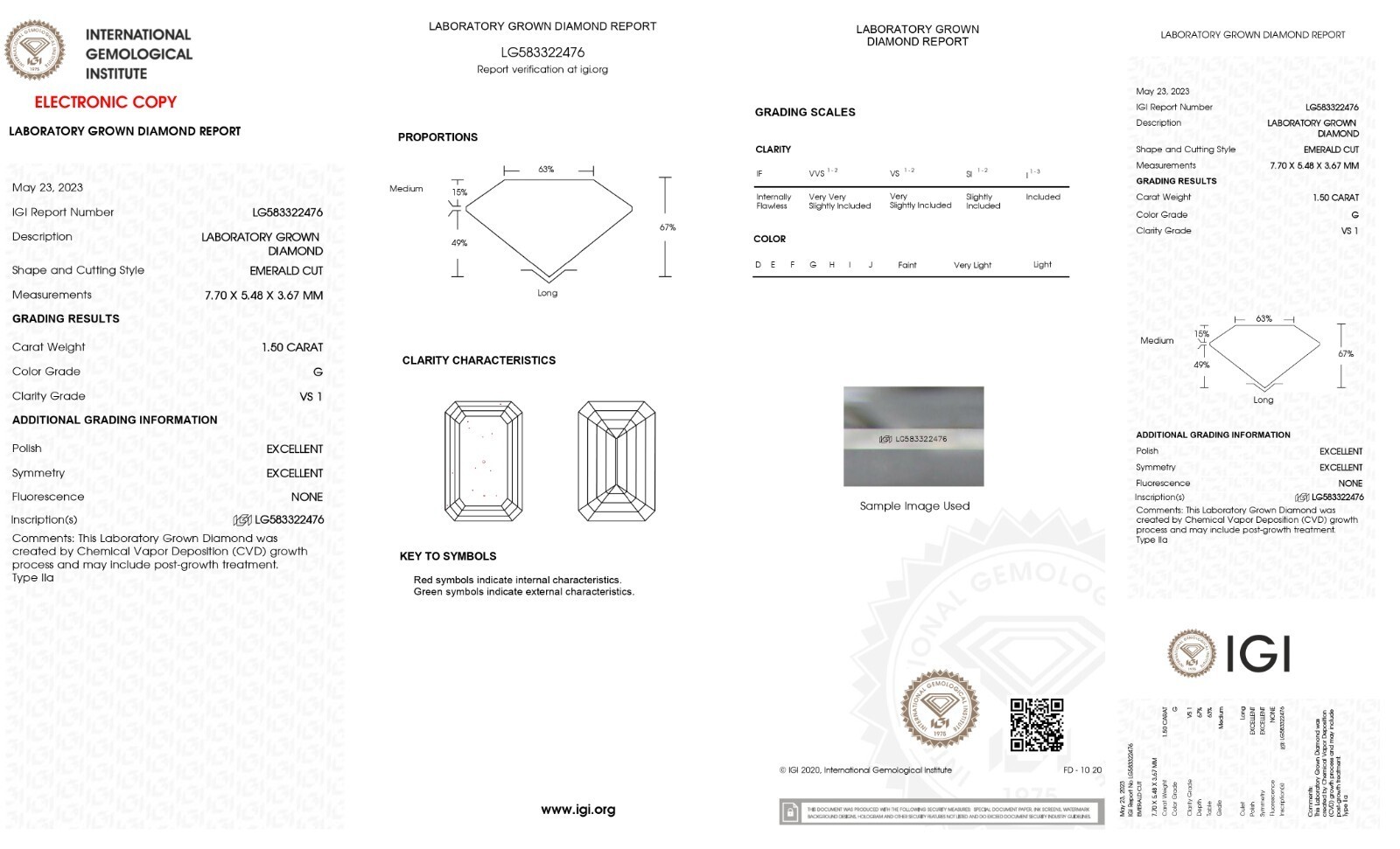 Lab Grown 1.50 Ct Emerald Cut Igi Certified and 50 similar items