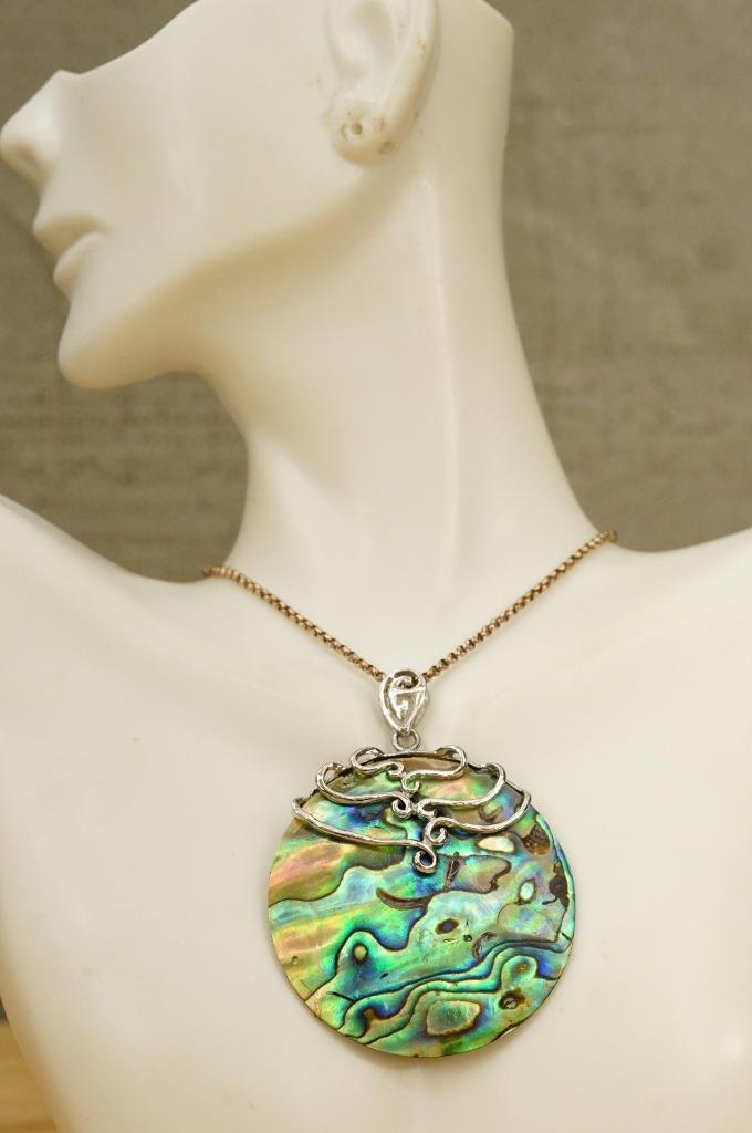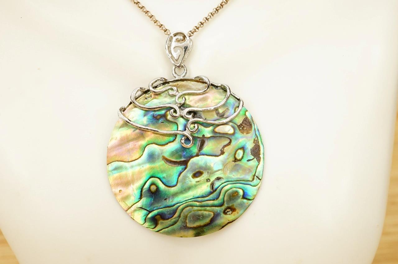 Artisan Jewelry Abalone Paua Shell Pendant on a Sterling Silver 24" Necklace