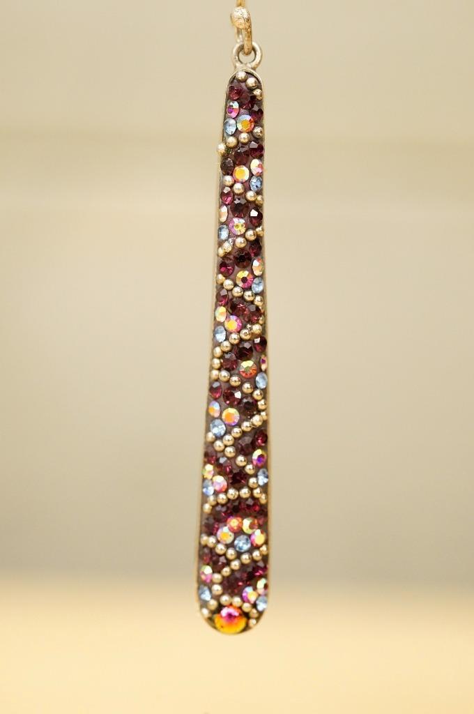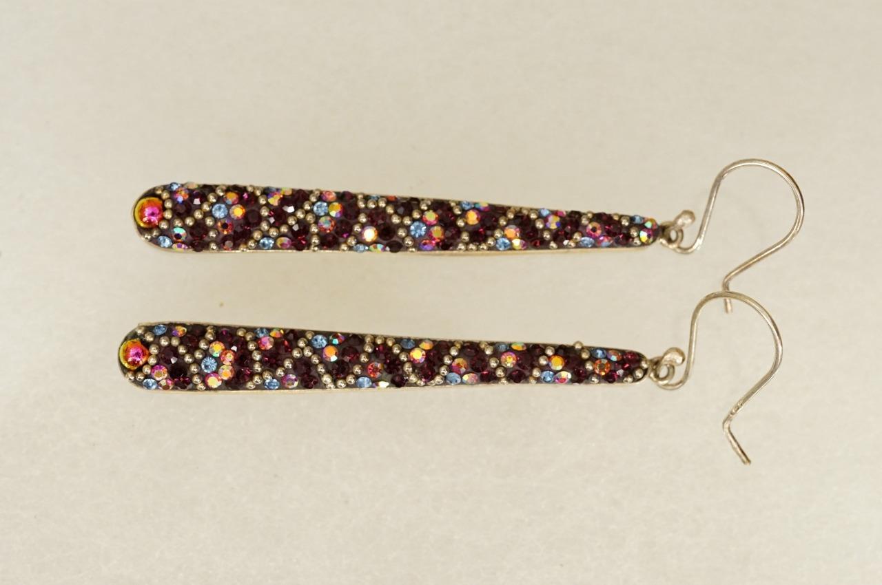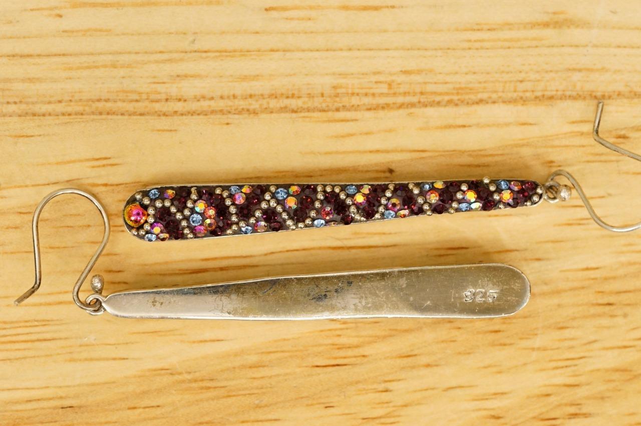 NOS Mosaico Sterling Silver Earrings Pierced Beaded Red Crystal Dangles 2.5"