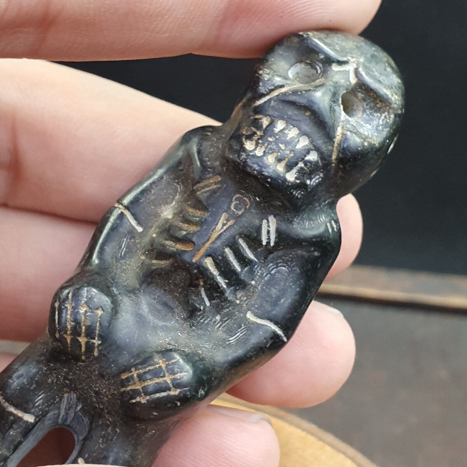 Antiguo jade misterioso esqueleto talla piedra de jade Amuleto Bead