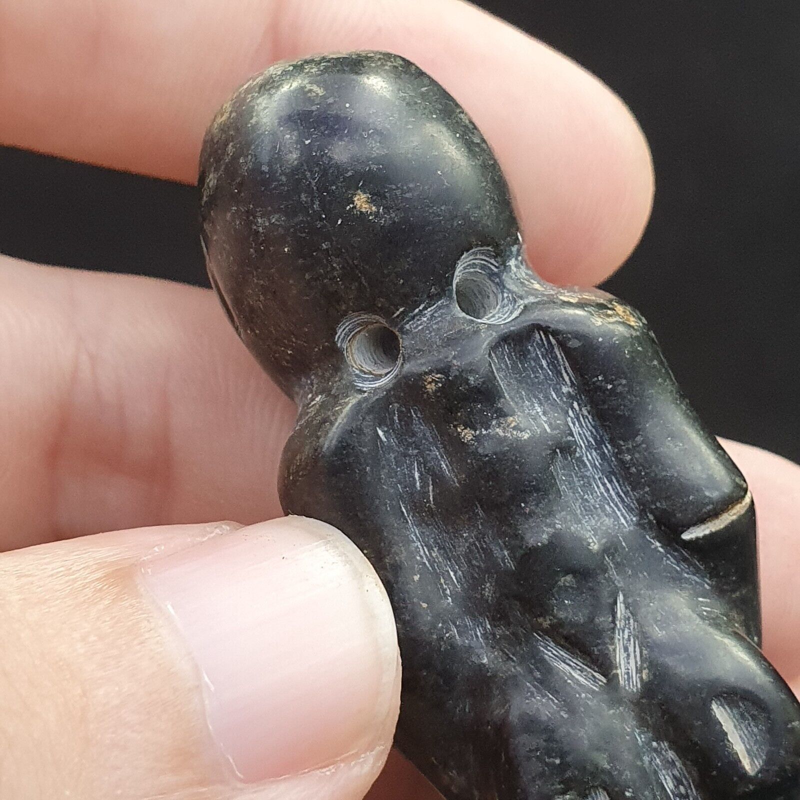Antigua piedra negra de jade tallada a mano amuleto colgante de cuentas