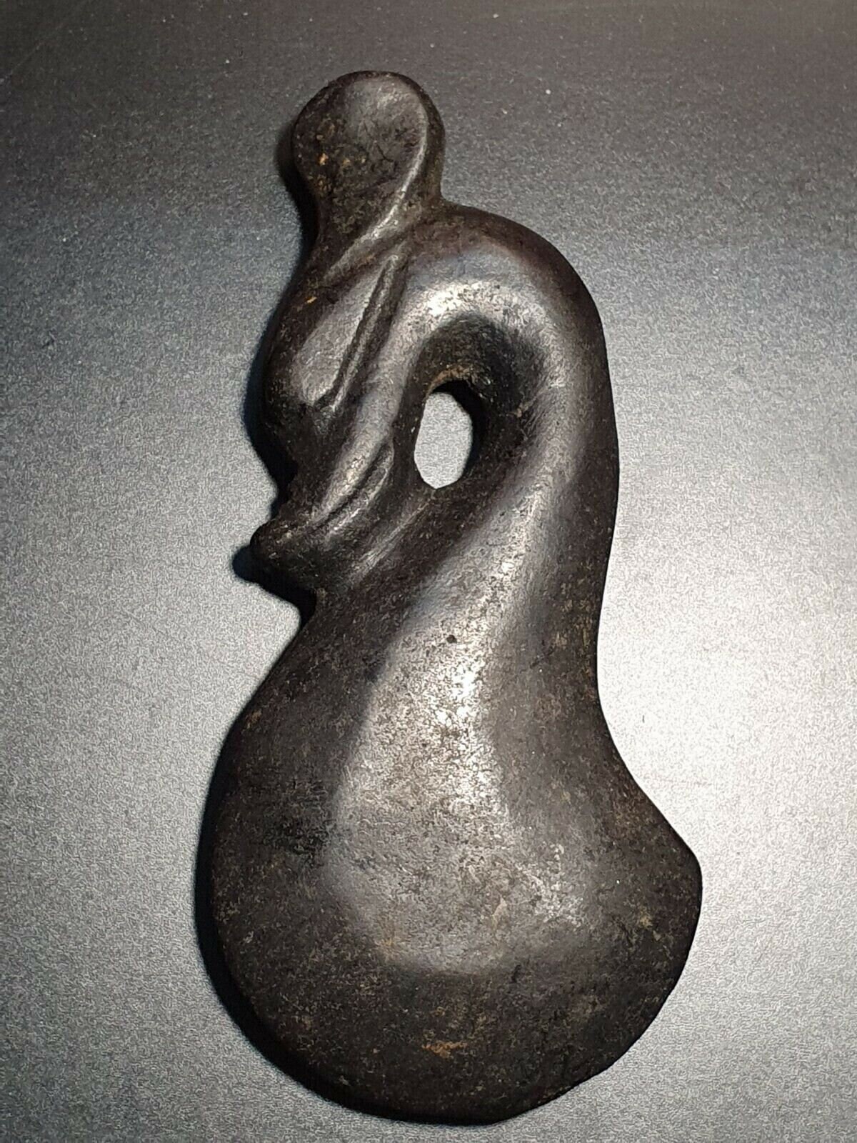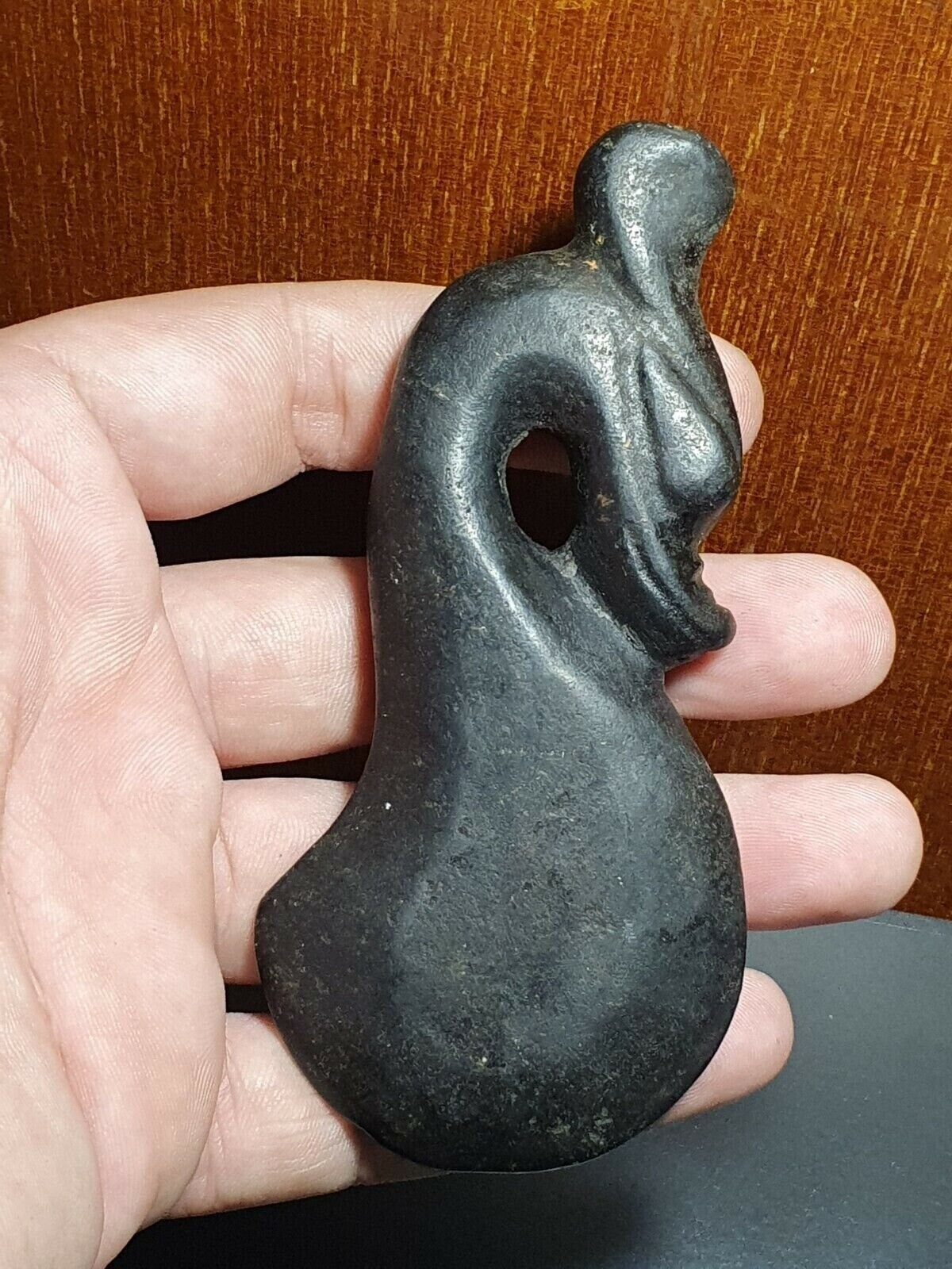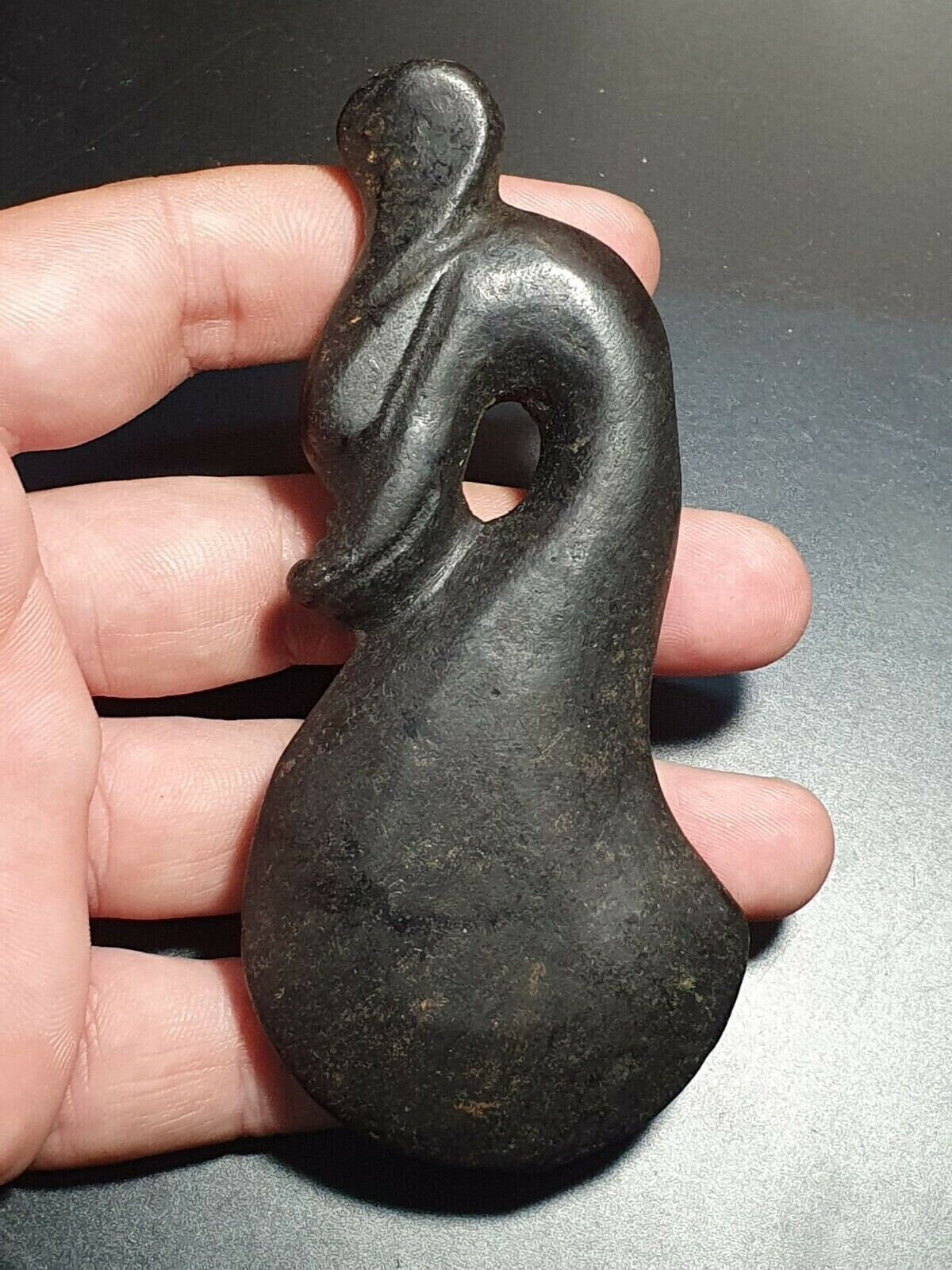 Antigua piedra negra de jade tallada a mano amuleto colgante de cuentas