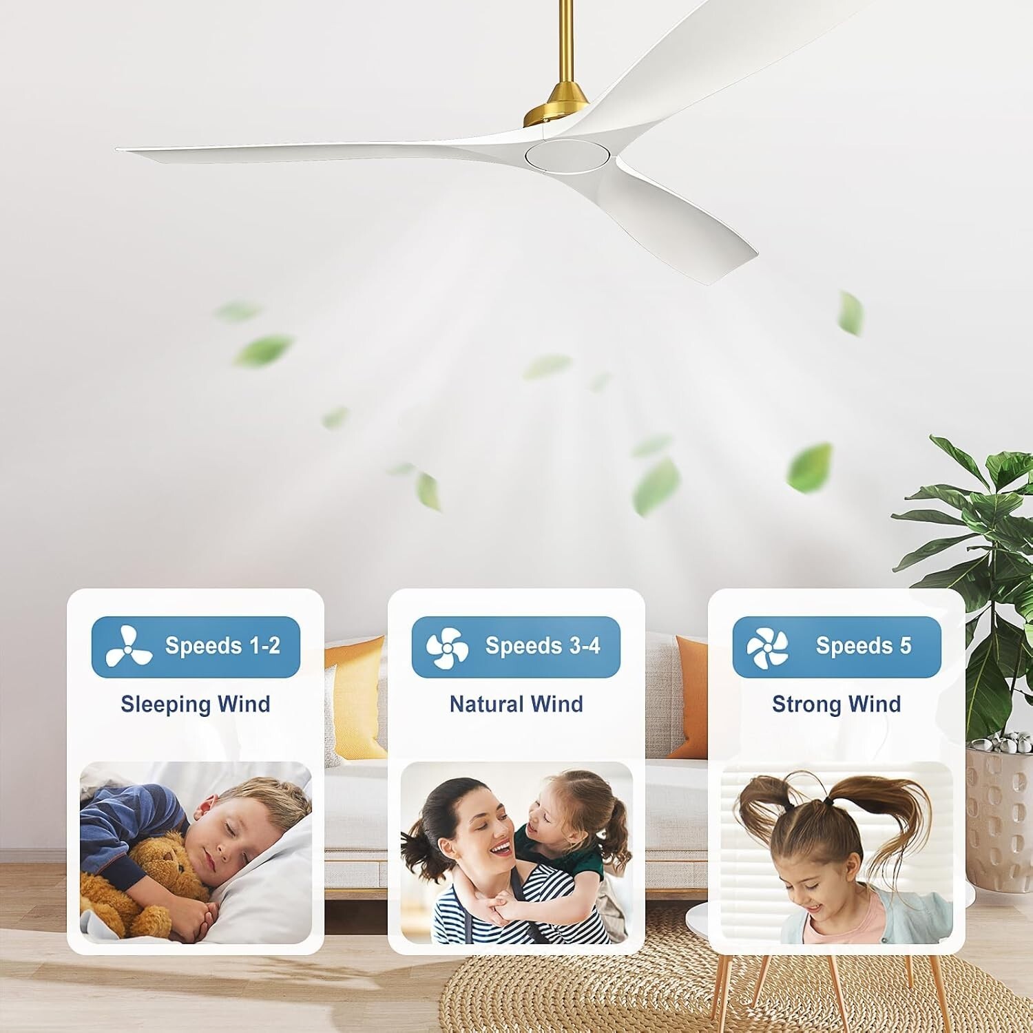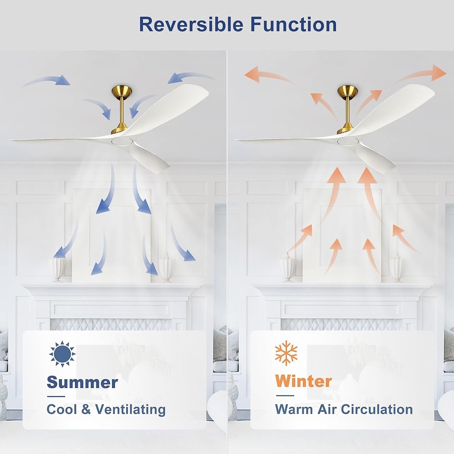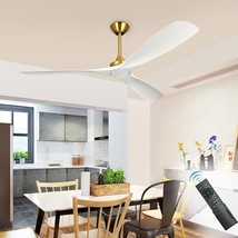 Depuley 60" 3 Blade Ceiling Fan with Light, White/Gold w/ Remote -Indoor Outdoor