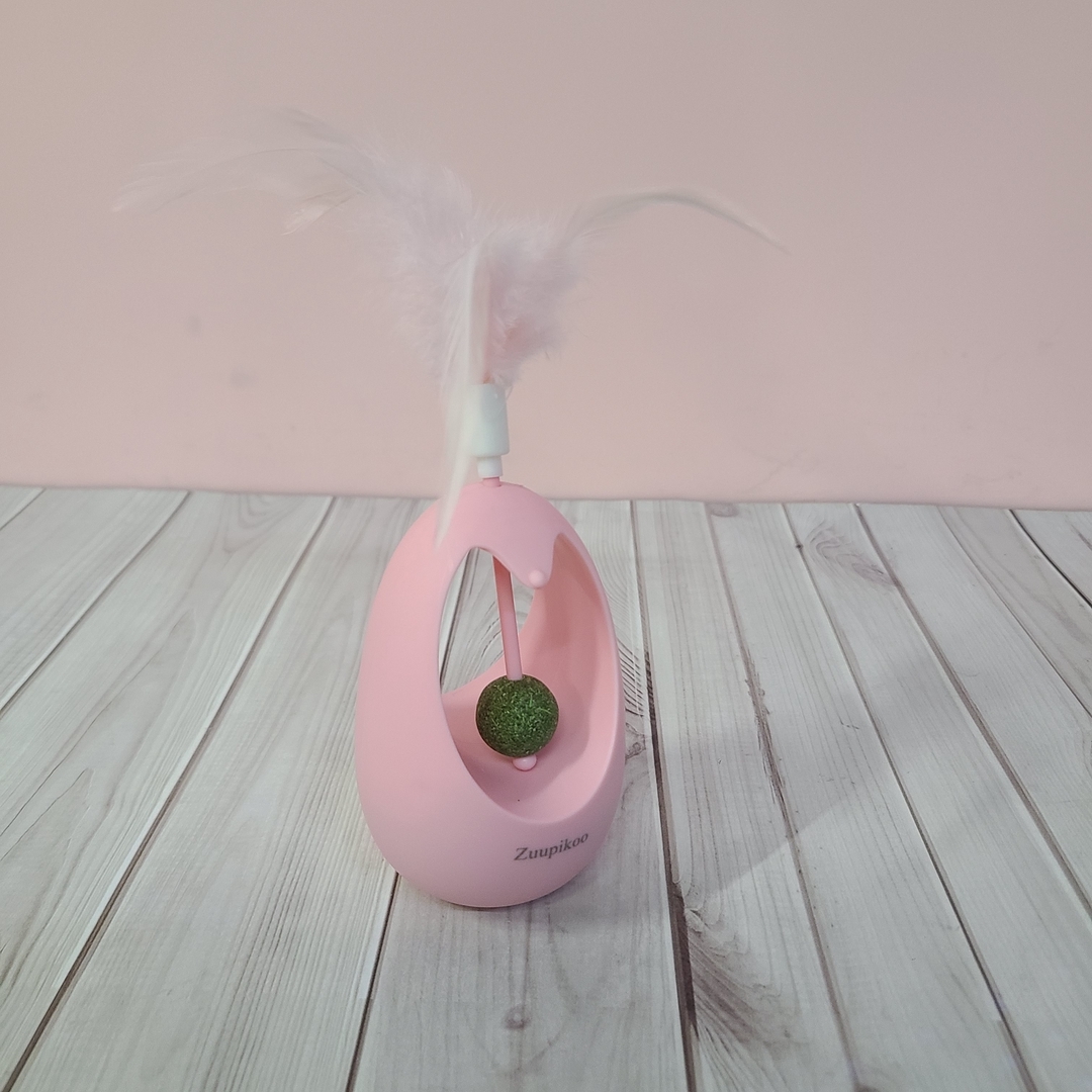 3. Inside the top, you’ll find a hidden compartment with a soft, fluffy feather and a concentrated dose of catnip. This combination triggers your cat’s natural curiosity and excitement, encouraging them to explore, sniff, and interact with the toy