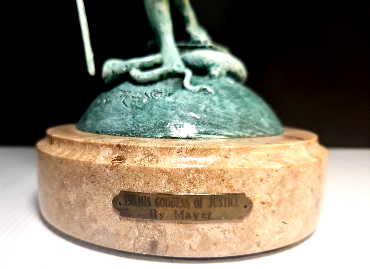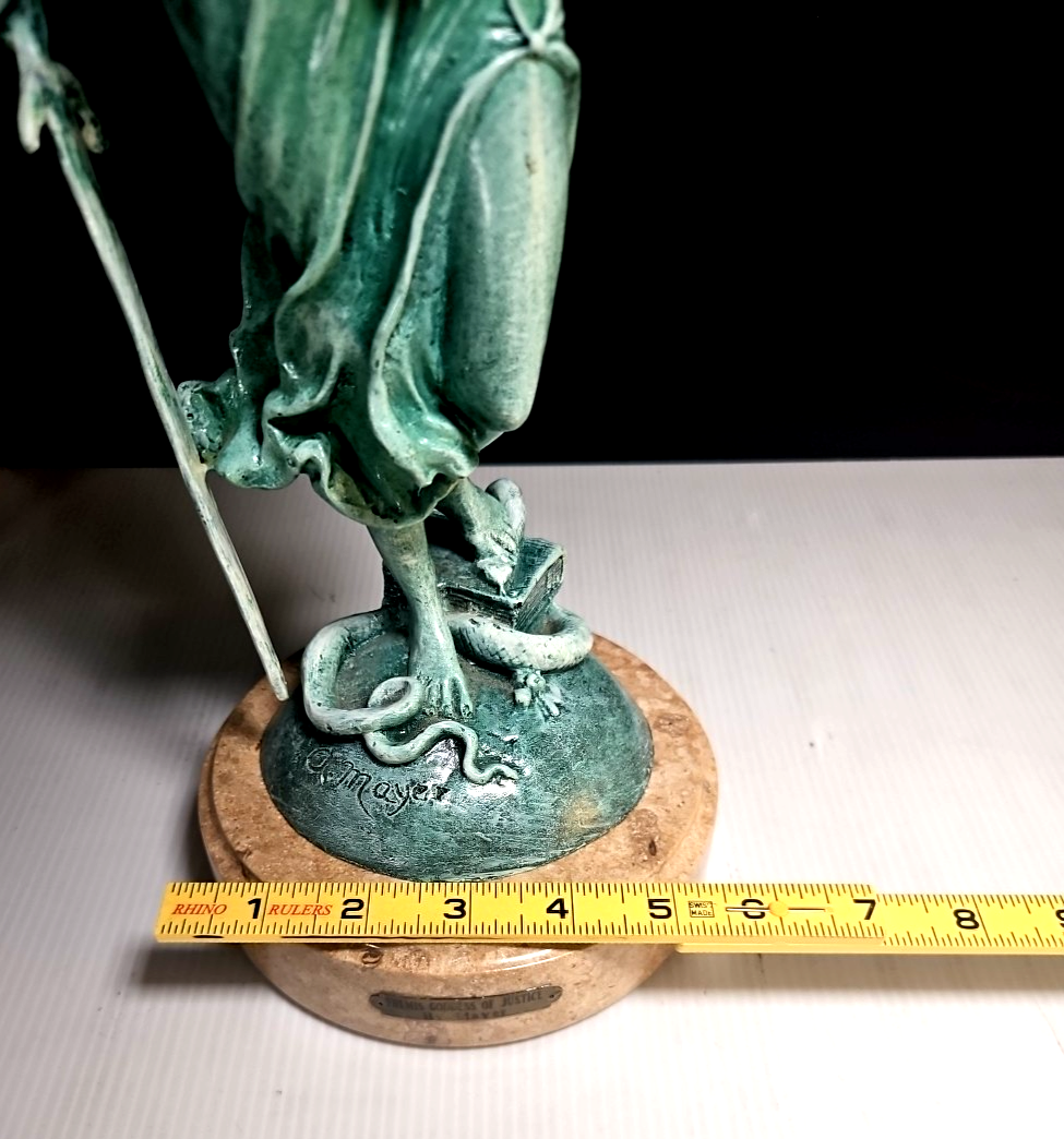 Themis Goddess of Justice Bronze Statue Signed A. Mayer – 18" Marble Base –