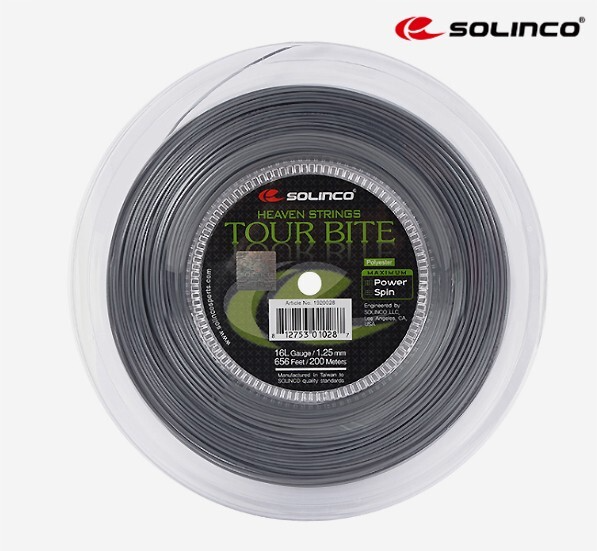 Main Features ---Brand : Solinco ---Sports : Tennis ---Model : Solinco Tour Bite 1.10/1.20/1.25mm 200m ---Color : Gray ---Gauge : 1.10mm / 19 Gauges 1.20mm / 17 Gauges 1.25mm / 16L Gauges ---Length : 200m