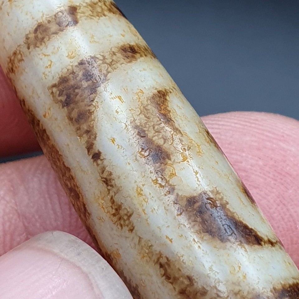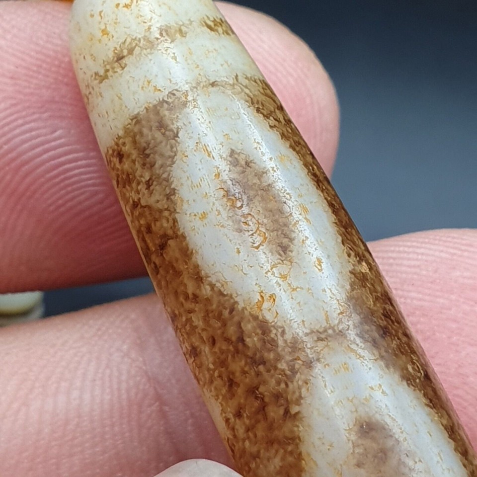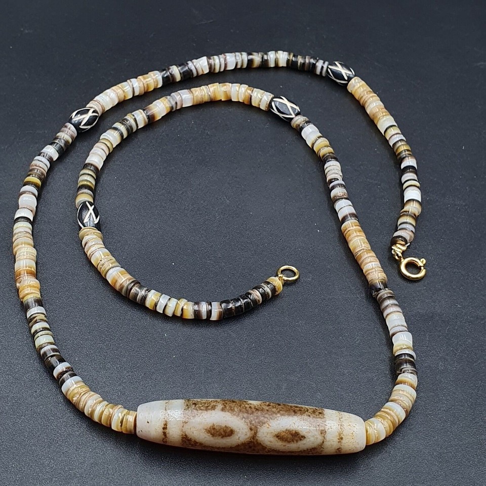 Tibetano Himalaya Agata Grano Antiguo Amuleto Collar Raro Patron Tibet Dzi Colgante