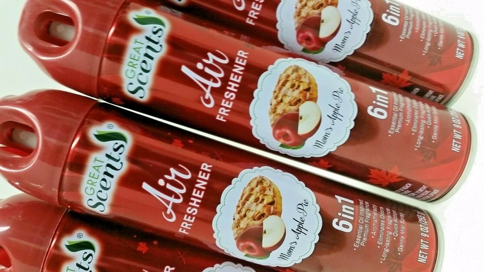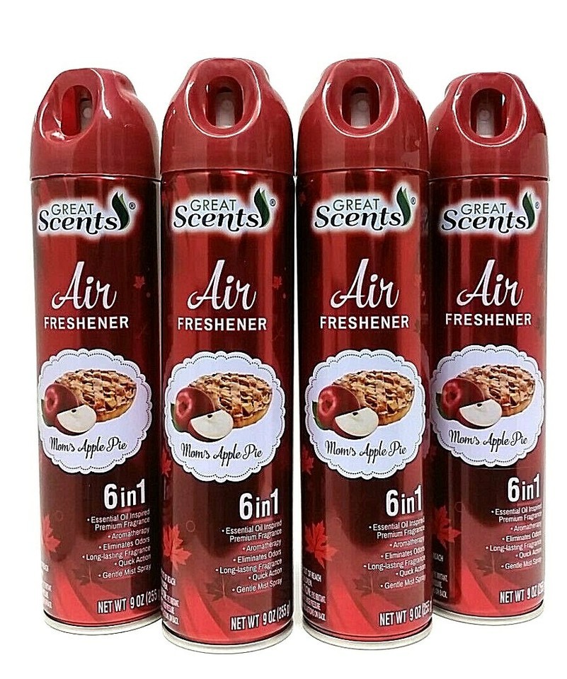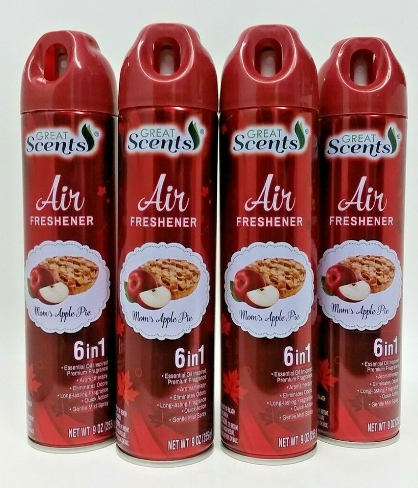( LOT 4 ) GREAT SCENTS MOM'S APPLE PIE Odor Eliminator 6 in 1 Air Freshener Spray 9 oz Each