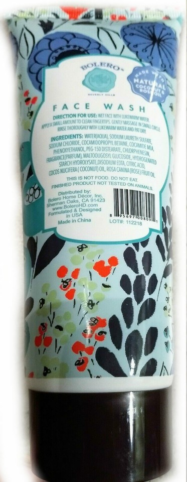 ( LOT 3 ) Bolero.B.Hills Coconut & Rose Oil Face Wash 5 Oz Each NEW SEALED TUBES
